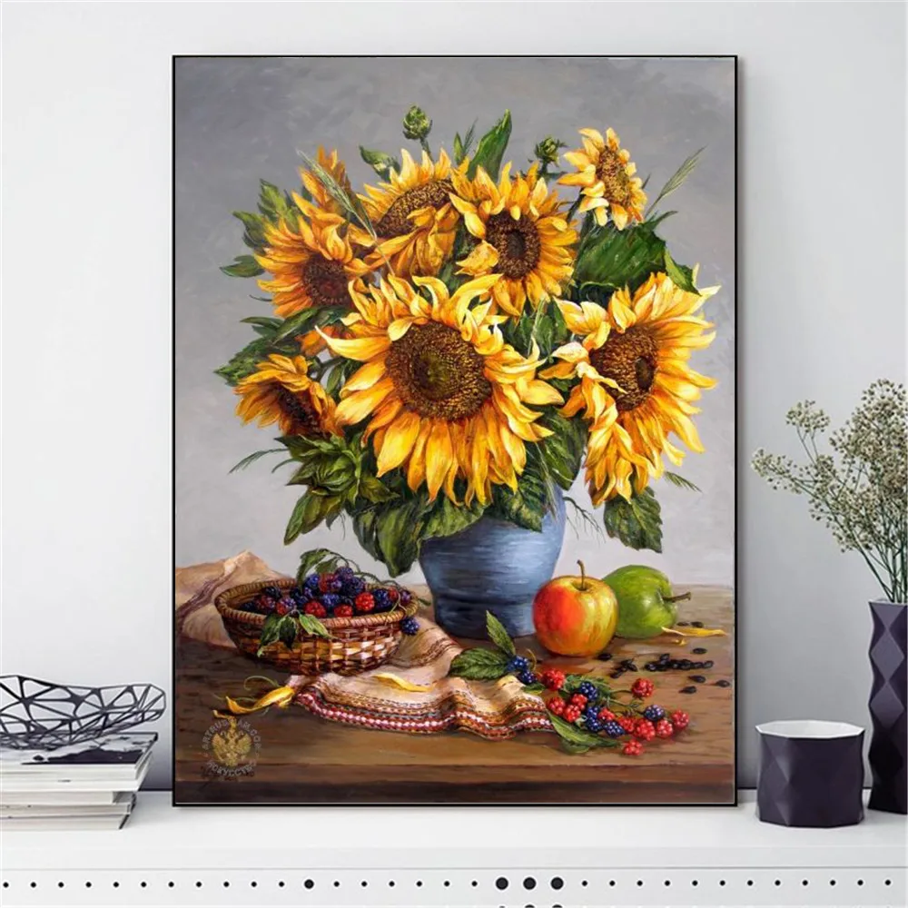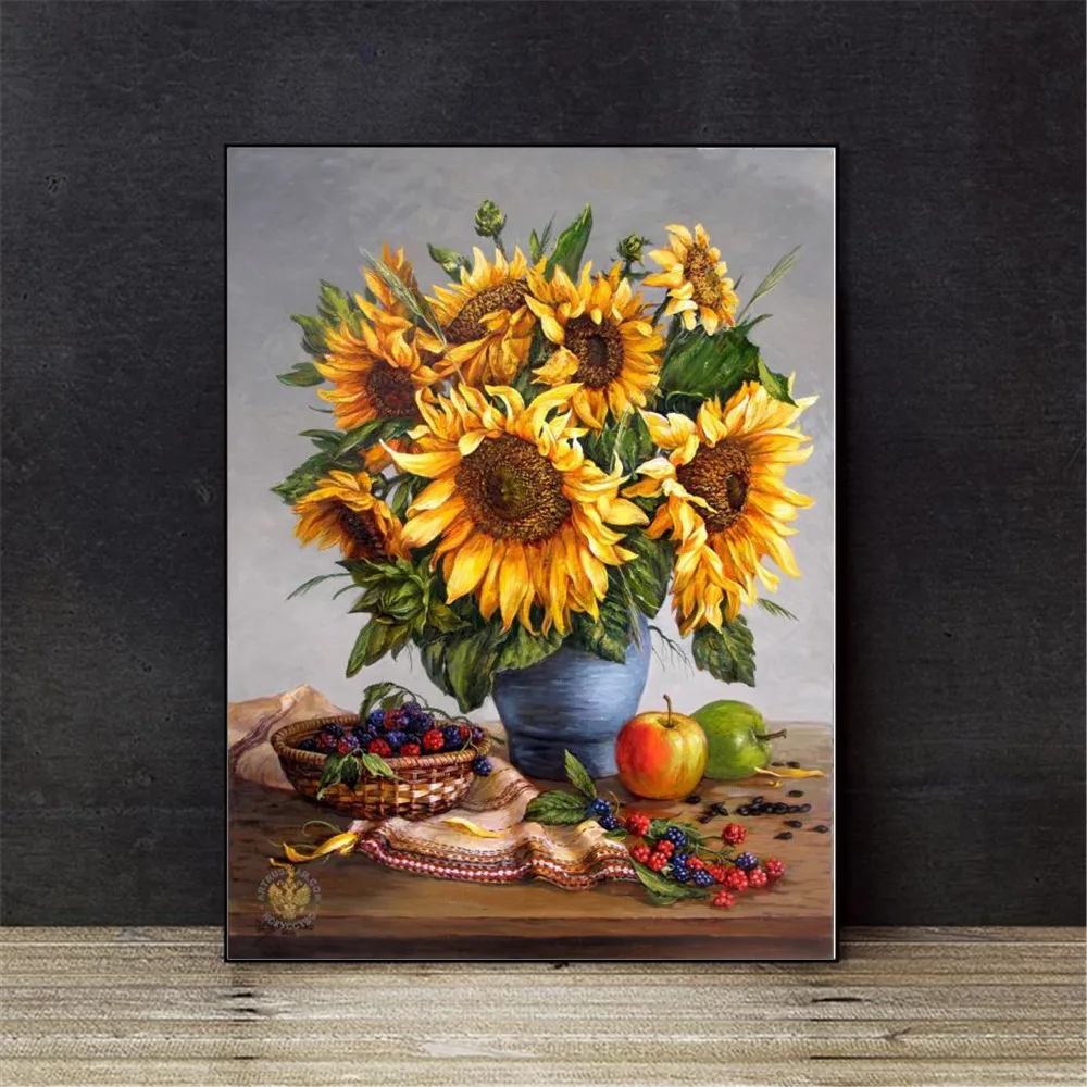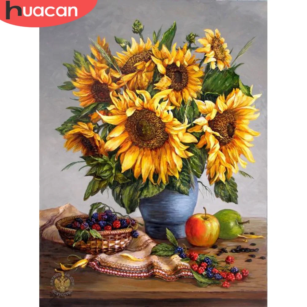 HUACAN Вышивка Цветы хлопчатобумажная нить картина Сделай Сам крестиком наборы рукоделие 14CT домашнее украшение