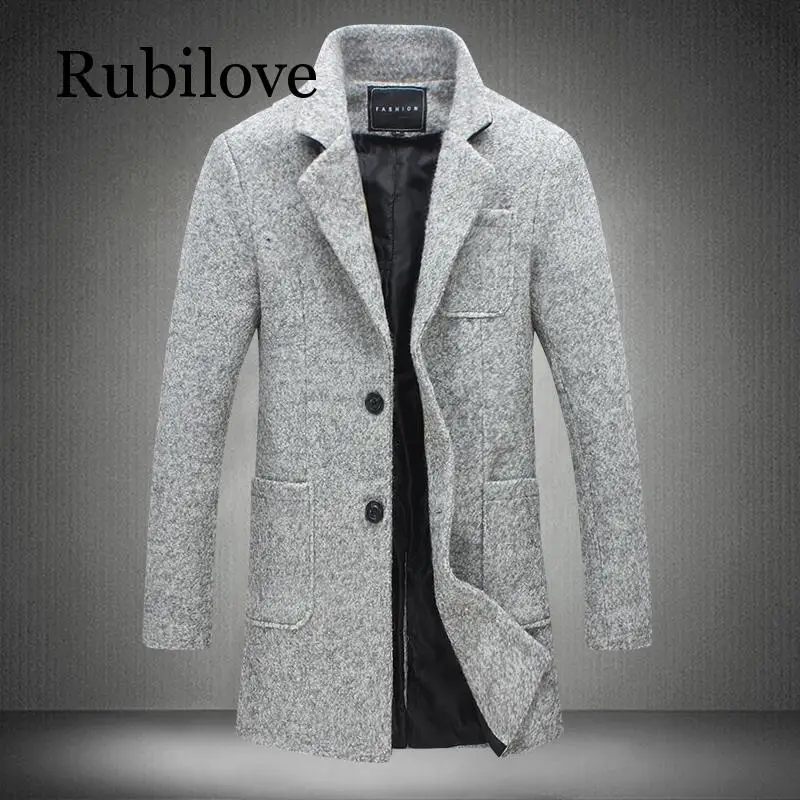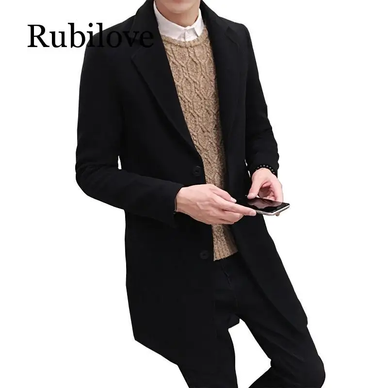 Новинка 2019, зимнее шерстяное пальто Rubilove, мужские шерстяные пальто с длинными секциями для отдыха, мужские однотонные повседневные модные курткиповседневные мужские куртки