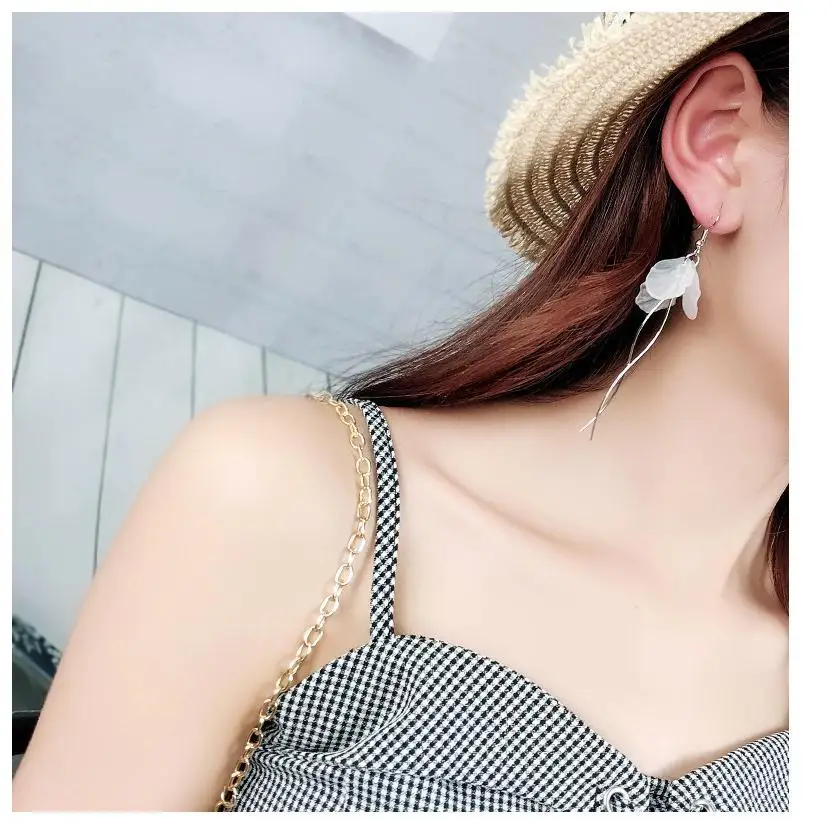 Женские длинные серьги в форме лепестка, белые металлические серьги-подвески в форме S с кисточками, ювелирные изделия, 2019
