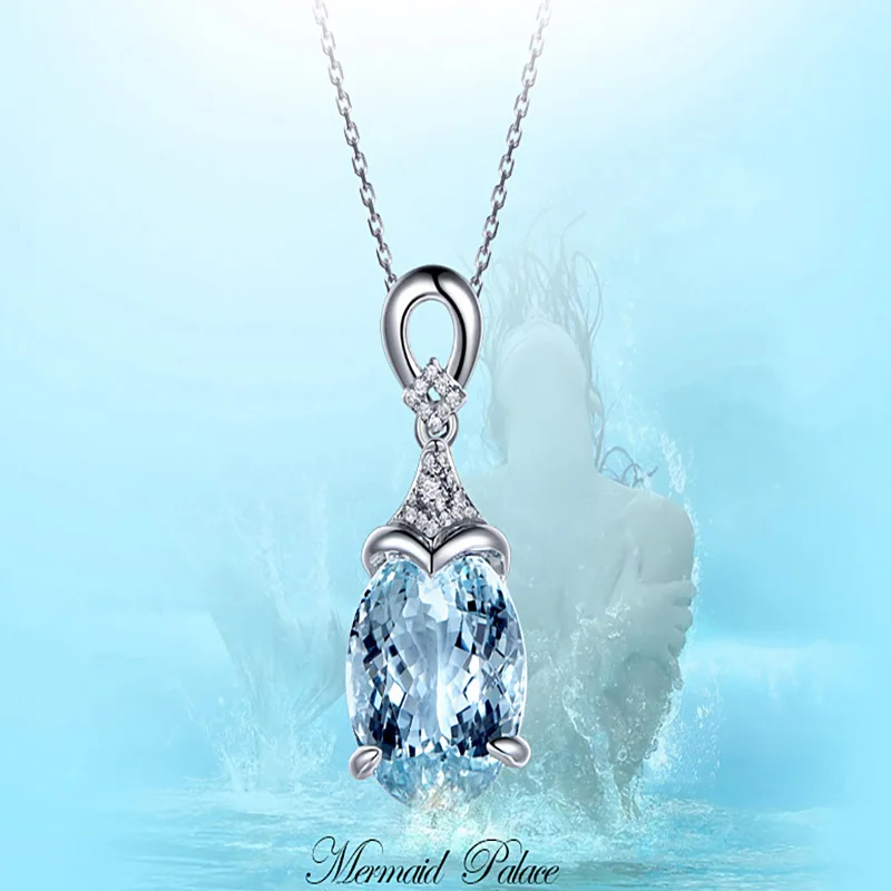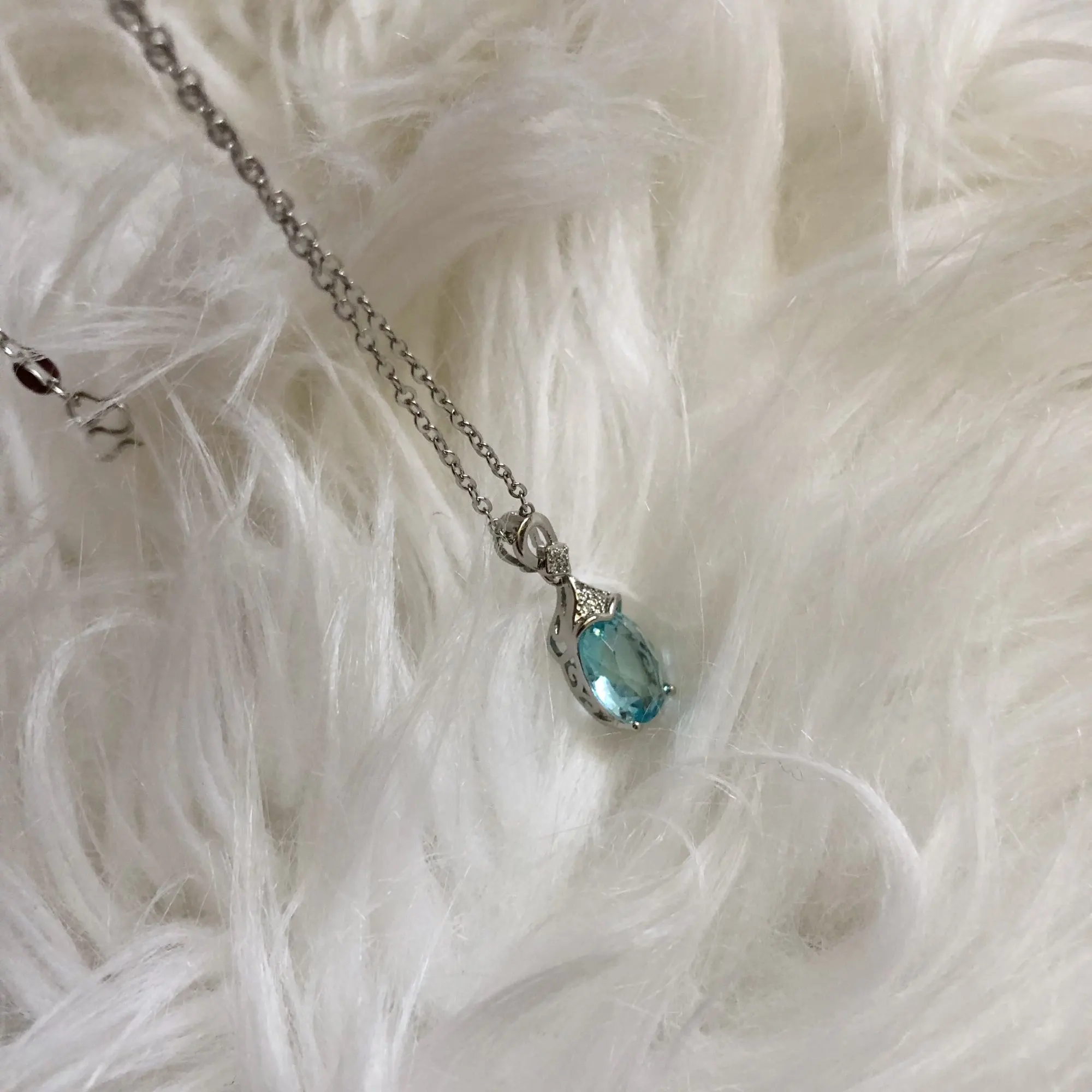 Цепочка женская из серебра 925 пробы с кулоном с аквамарином