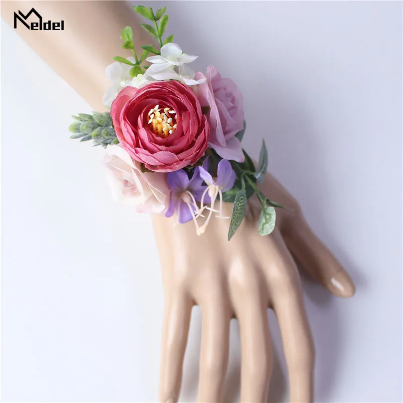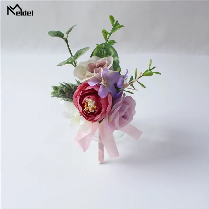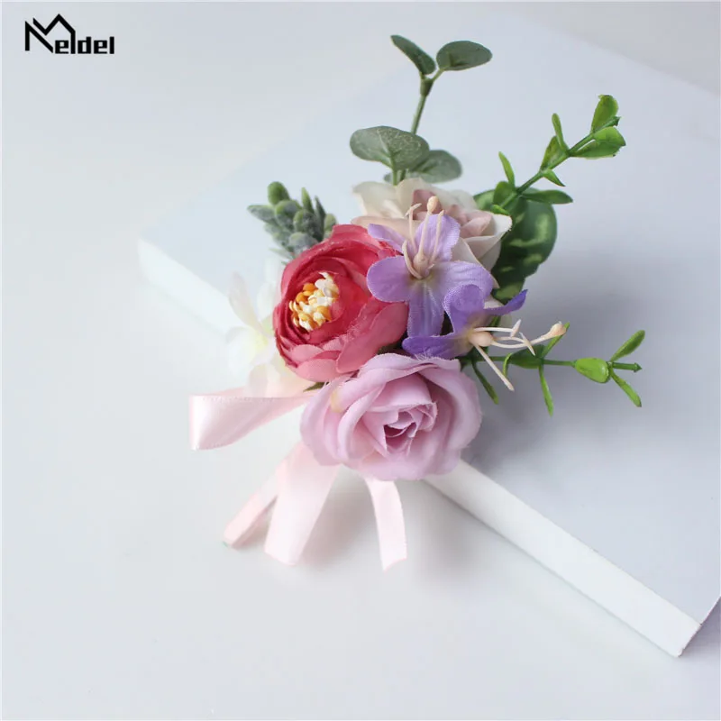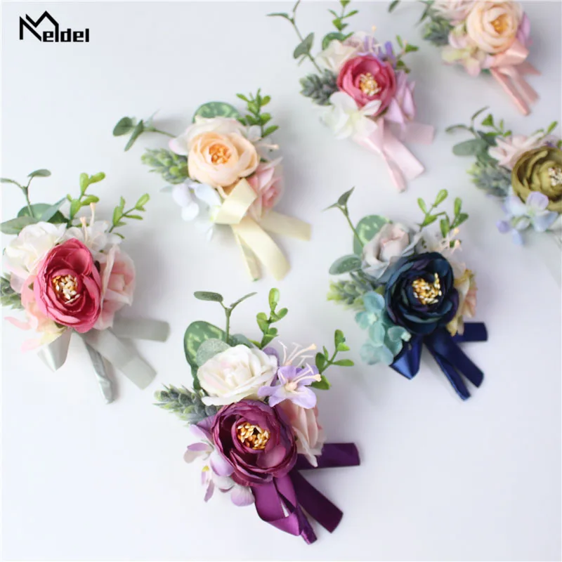 Мужской корсаж и бутоньерка Meldel, корсаж на запястье невесты, Розовый Синий Искусственный цветок розы, свадебные аксессуары