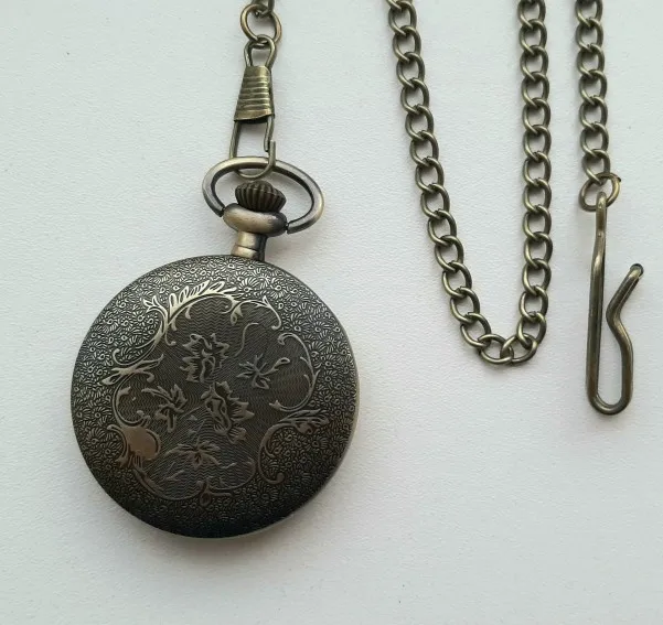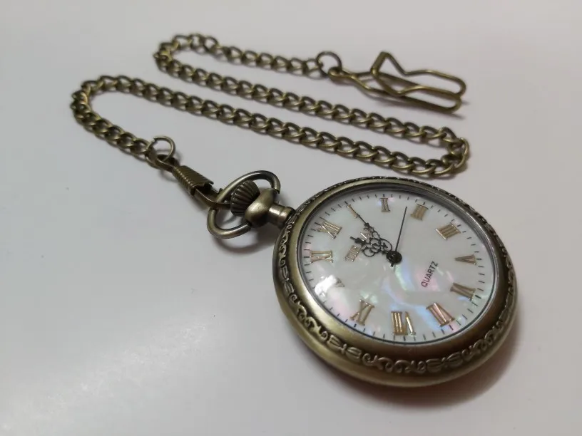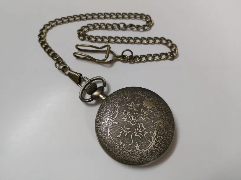 Бронзовые ретро римские цифры дисплей кварцевые карманные часы Винтаж кулон часы для мужчин женщин брелок Свитер Цепочкаподвесная цепочка