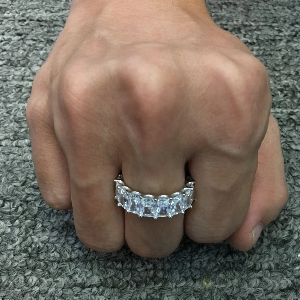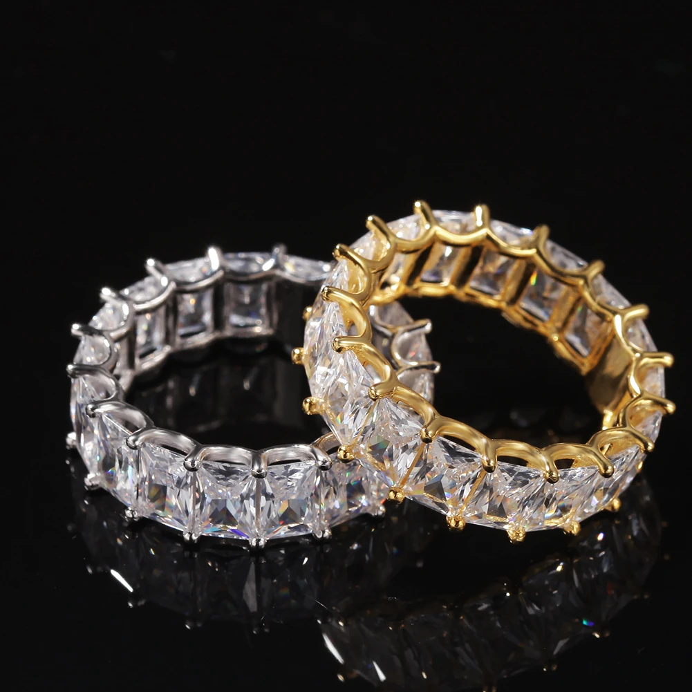 Кольцо UWIN для хип-хопа с багетом, золотоебелое золото 7 мм квадратное CZ 1 ряд, модные вечерние ювелирные кольца для мужчин и женщин