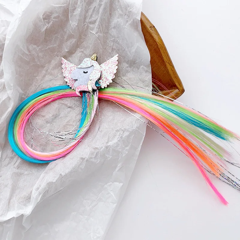 CN 5 шт./лот 3,5 "Единорог банты для волос с длинным париком для девочек Дети Принцесса мультфильм Кожа бант заколки для волос аксессуары для волос.
