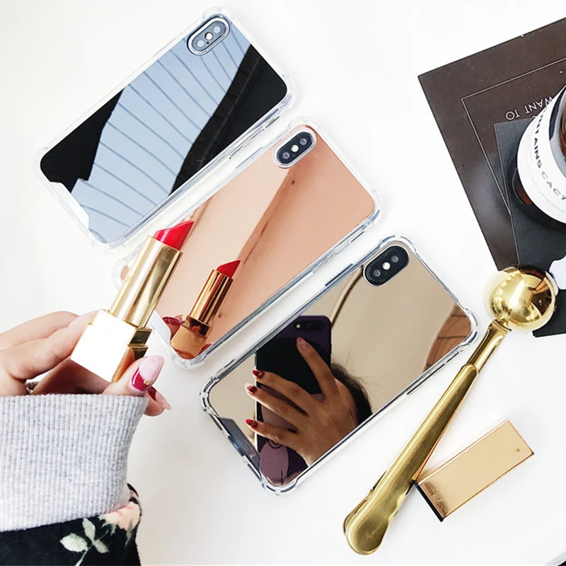 Противоударный зеркальный чехол с подушкой безопасности для iphone XS MAX XR 7 8X10 6 6S Plus 7 8 Plus X 10, мягкие силиконовые чехлы из ТПУ для телефонов
