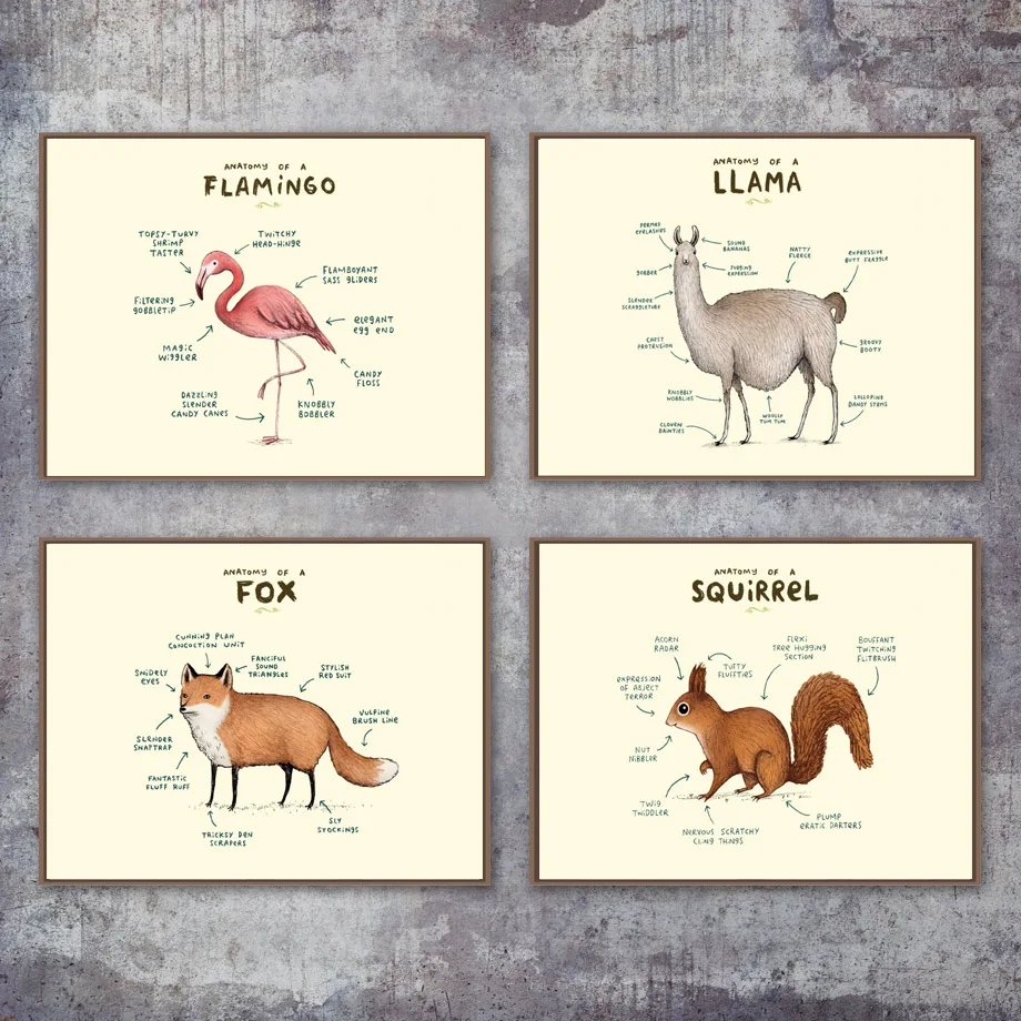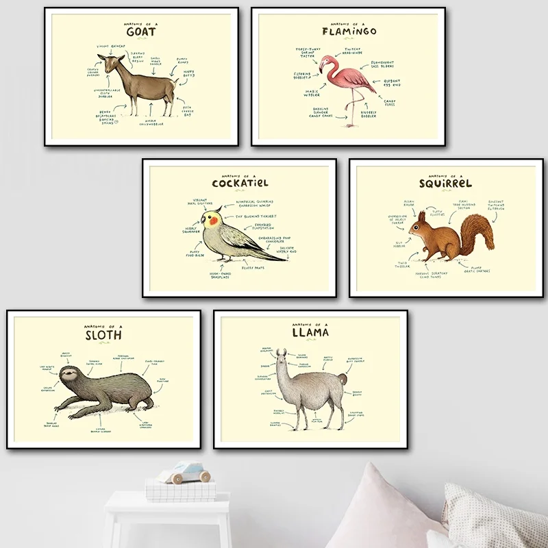 Настенная живопись, плакаты и принты в скандинавском стиле, фламинго, лиса, Ленивец, анатомия овец, модульные картины для гостиной, домашний декор