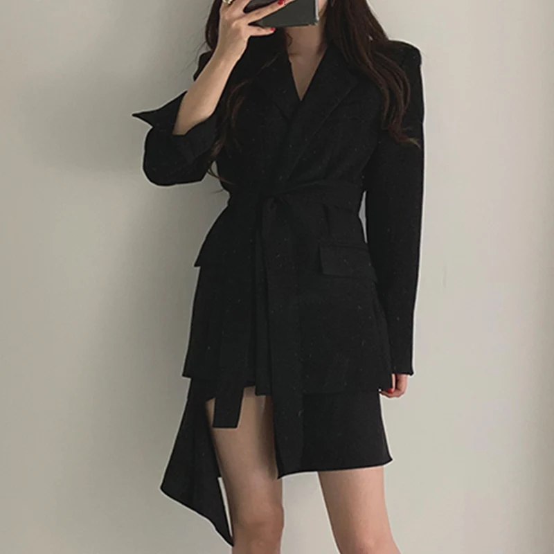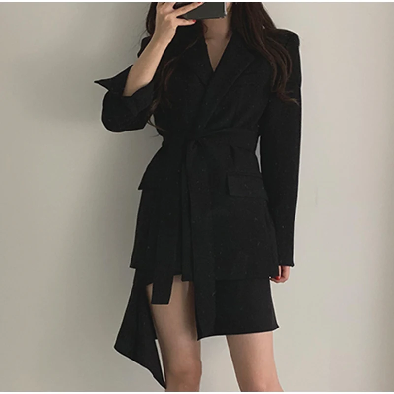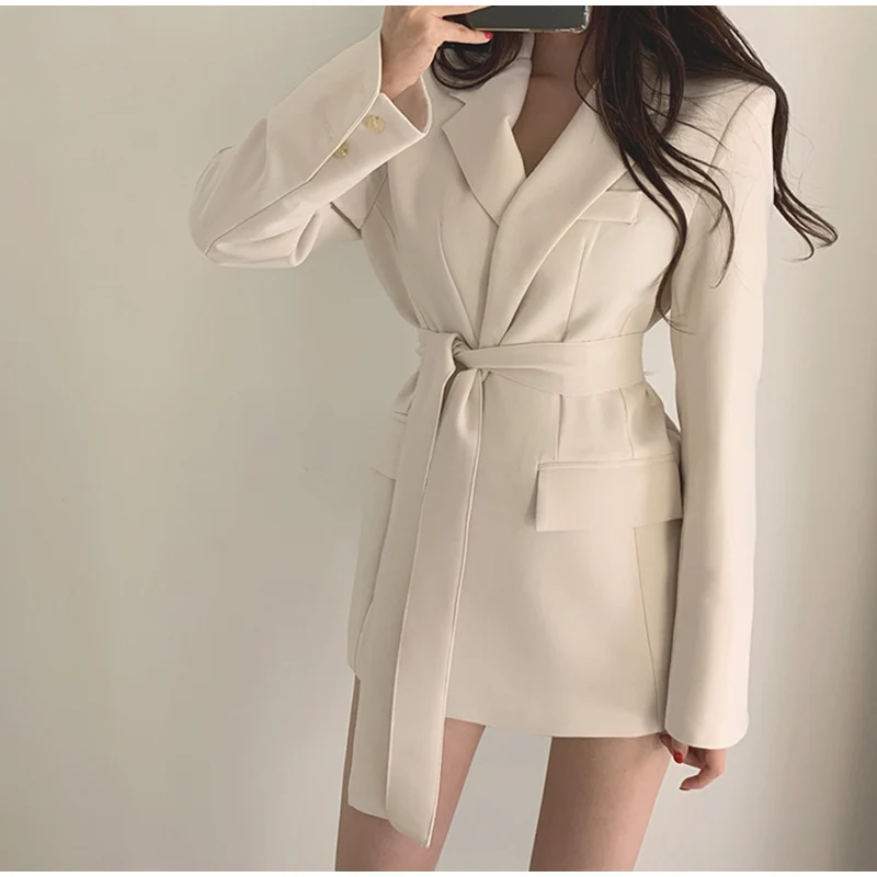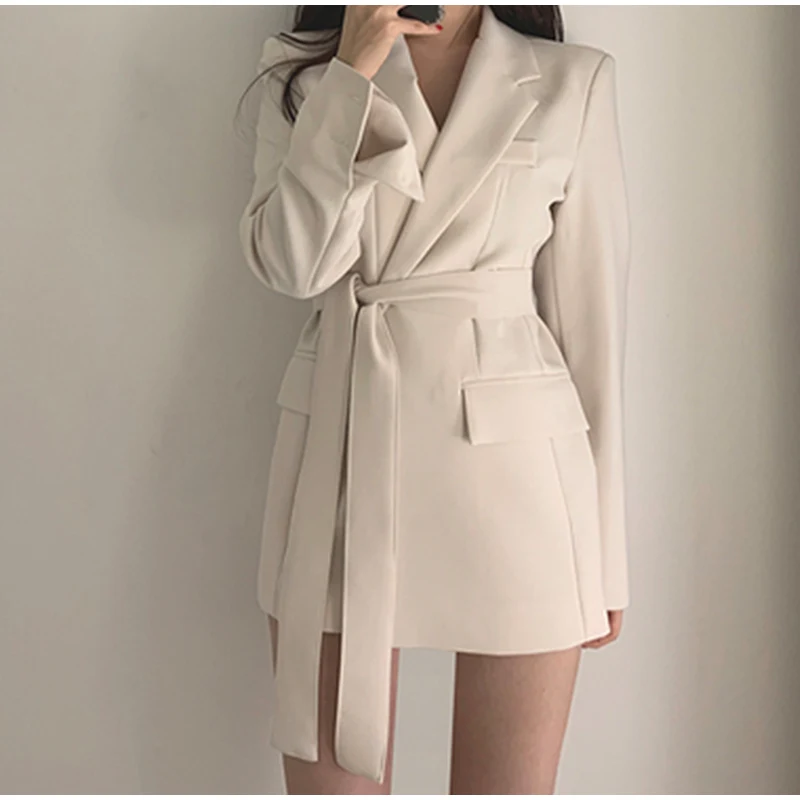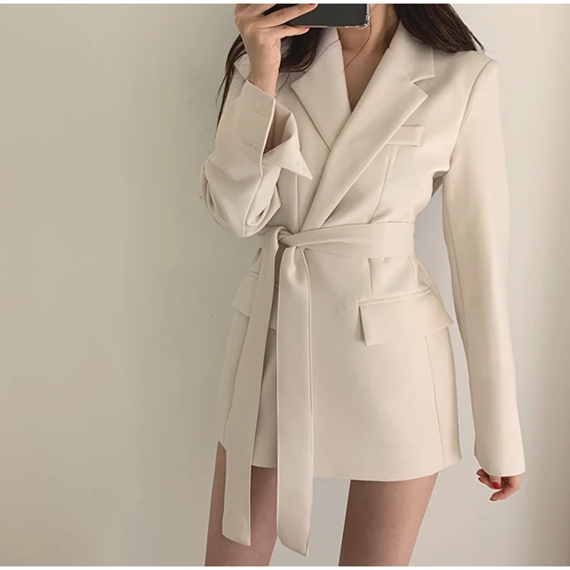 Повседневный блейзер с вырезами и поясом, осенняя Женская куртка, пальто для деловой женщины, костюм, платье для женщин 2020, элегантный абрикосовый Тонкий Блейзер, верхняя одежда