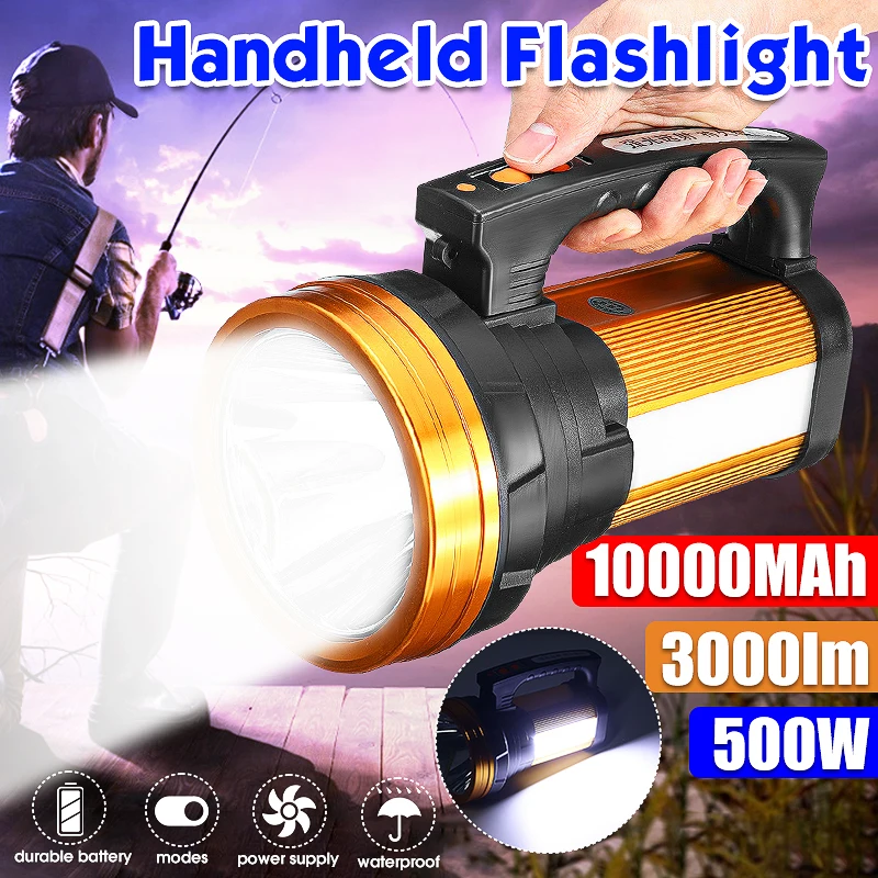 Сверхяркий портативный фонарик, перезаряжаемый от USB, 500 Вт, для использования на открытом воздухе, фонарь-прожектор, многофункциональный, длинный, для охоты