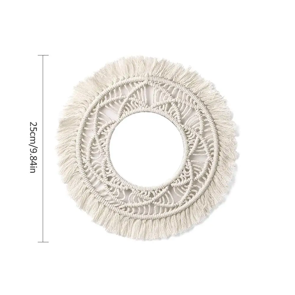 Ручная работа, кружевная бахрома, богемный стиль, Настенная фоторамка, фоторамка с кружевной полосой, маленькое круглое украшениеХарактеристика:1. Высококачественные материалы: хлопок и металлические кольца. Зеркало сплетено из формы солнца, без ущерба для практичности и красоты2. Это кружевное подвесное зеркало ручной работы подходит для стен, коридоров и вашей двери. Декоративное подвесное зеркало-это доступный, стильный и минималистичный интерьер, который идеально подходит для дизайнеров интерьера и домашнего декора.3. Уникальный стиль: круглая кружевная настенная рамка придает ощущение пространства вашему дому. Он привнесет в ваш декор богемный и винтажный стиль.4. Легко установить: независимо от того, Устанавливаете ли вы зеркала и фоторамки, или ваши любимые рисунки, вам нужно только клей, чтобы приклеить к стене.Спецификация:Материал: хлопковая веревка, металлическое кольцоРазмер: снаружи рамки: 25 см, 15 см внутри рамкиСтиль: кисточки в богемном стилеУпаковочный лист: тканая фоторамка из волоконной веревки * 1