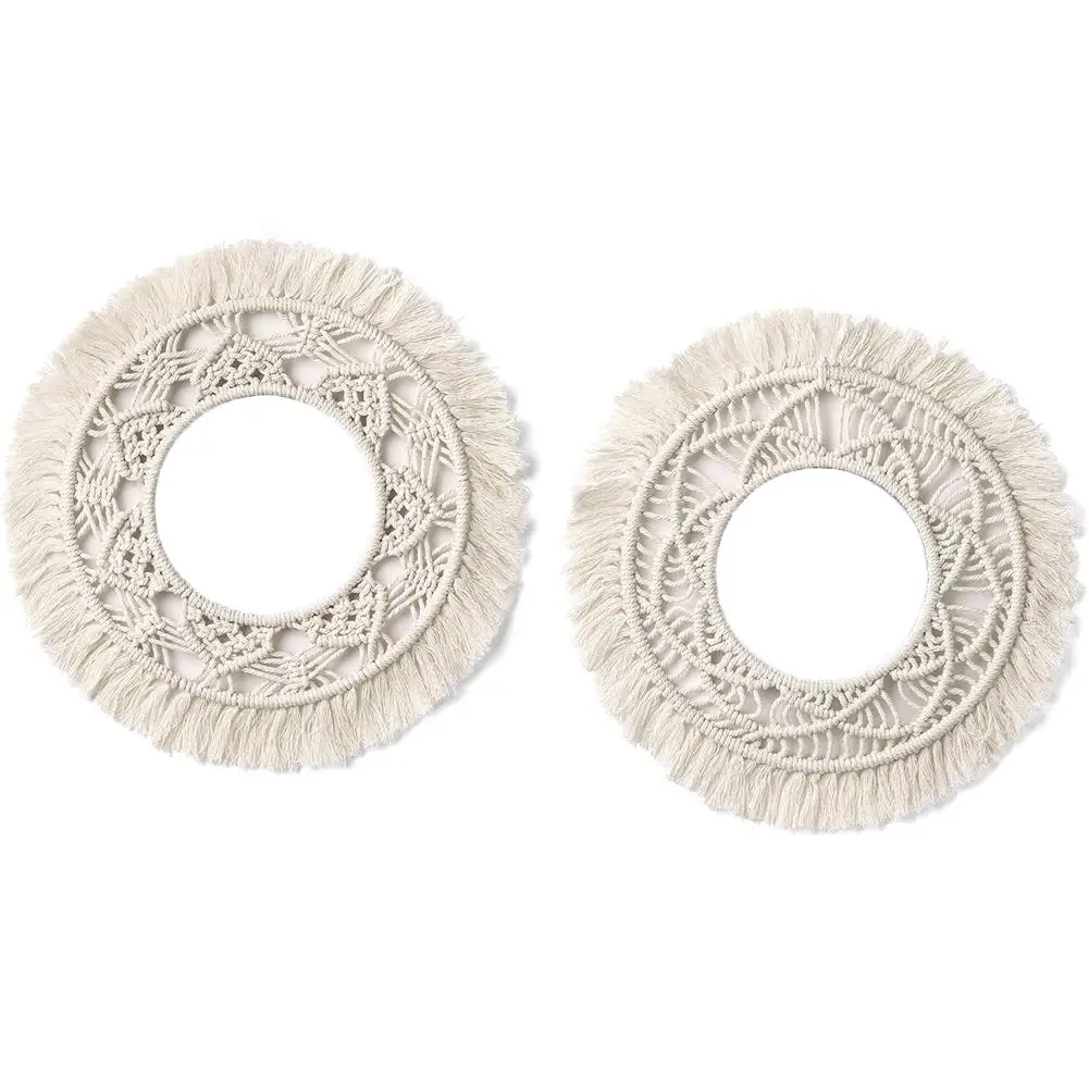 Кружевная настенная Фоторамка ручной работы в богемном стиле с бахромой, фоторамка с кружевной полосой, маленькое круглое украшение