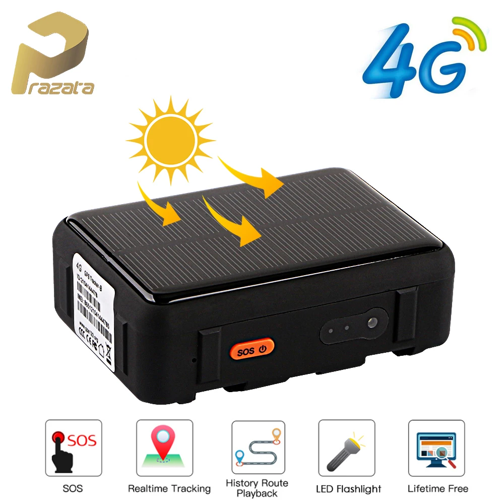 4G GPS-трекер, автомобильный GPS-трекер на солнечной батарее, водонепроницаемый, для лодок, лошадей, пульт дистанционного управления, голосовой монитор SOS, светодиодный светильник, бесплатное приложение
