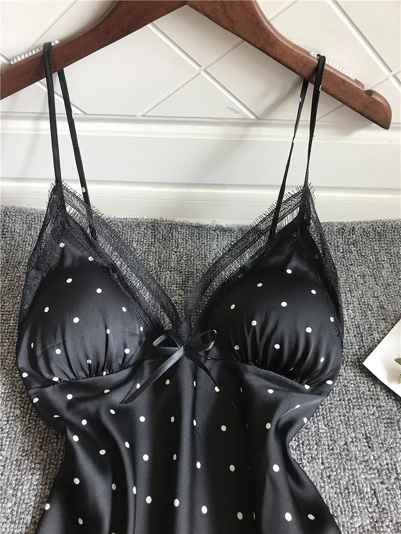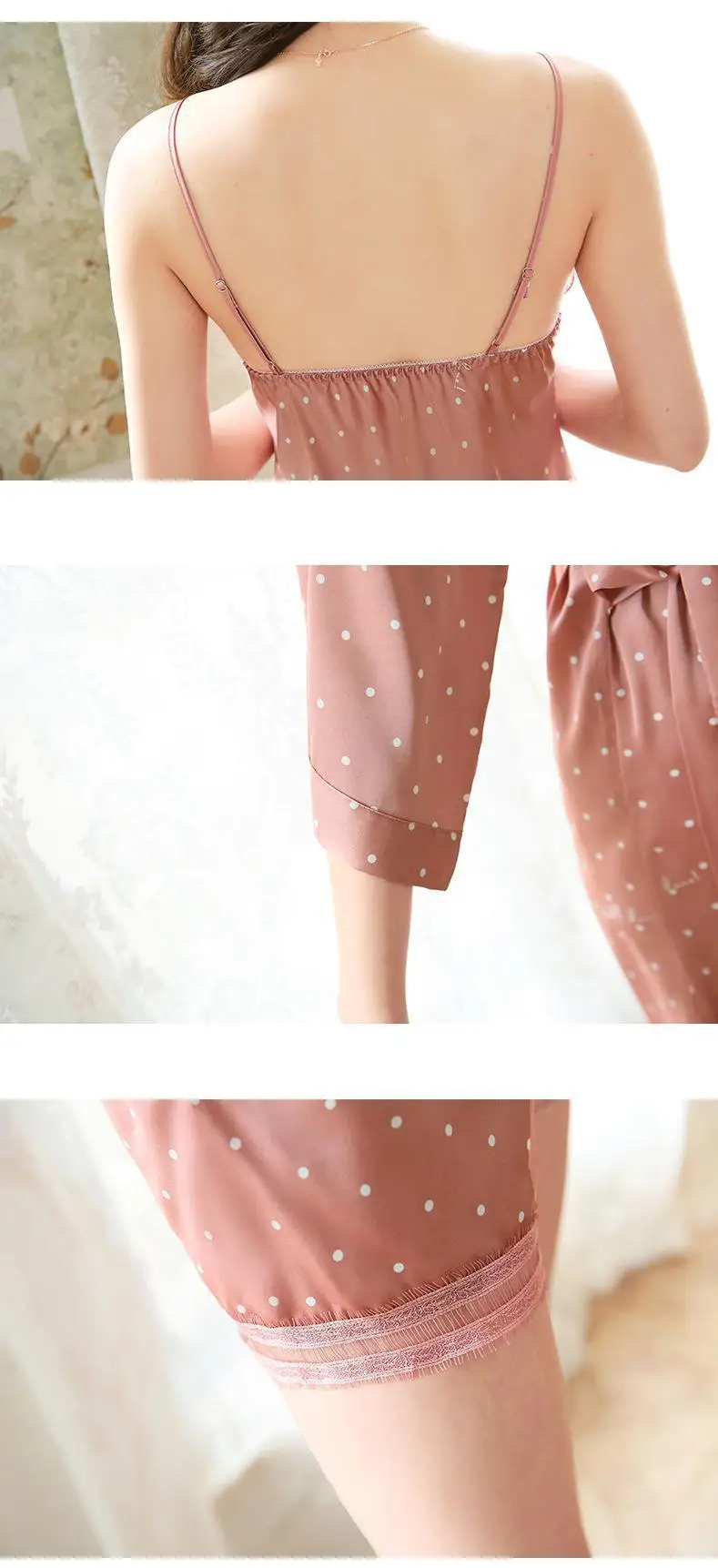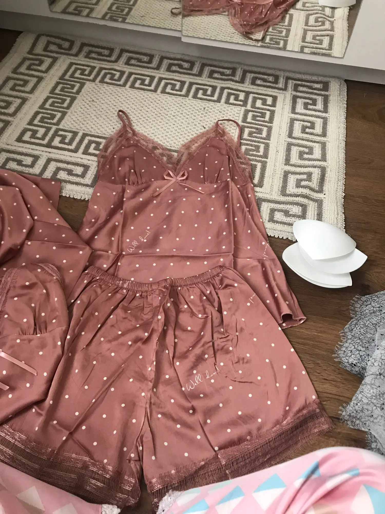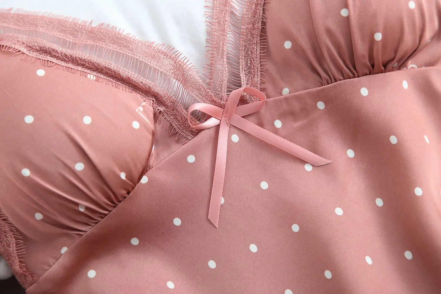 Комплект ночной рубашки и кимоно, в розовый горошек