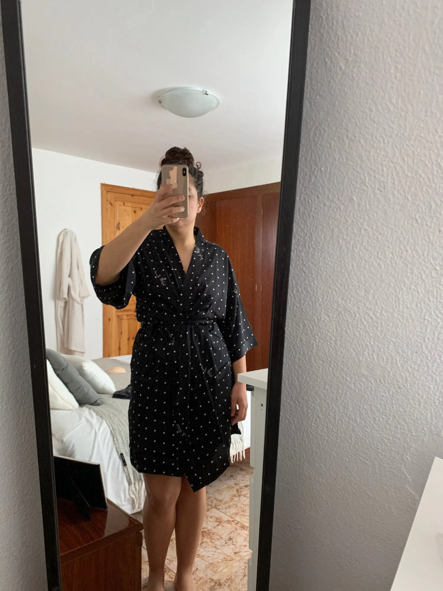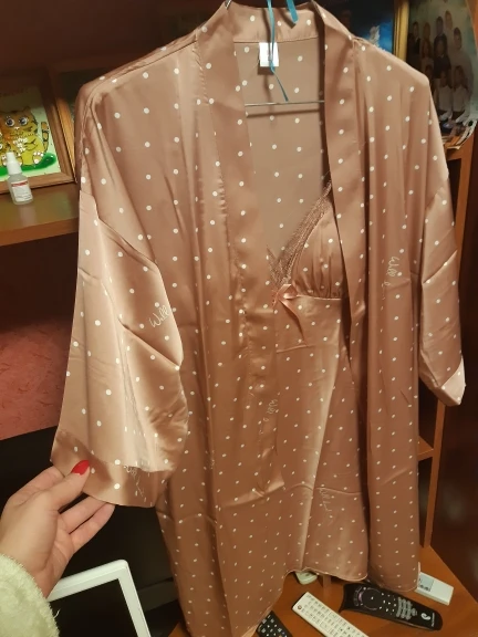 Девочки, брала чёрный комплект в крапинку ночнушка+халат. Размер хл. У меня рост 180. ОБГ 102/80/107. Ночнушка ОЧЕНЬ в облипку. Маленькая. И ОЧЕНЬ короткая на мой рост. Халат наоборот. Большой и свободный. Спрашивала у продавца по размерам, сказал ок. Берите хл. Будет норм. Маловато. Очень расстроилась , так как качество просто БОМБА!!!!! ПУШКА!!!! Это одна из лучших моих покупок на али за 8 лет!!!! ))) просто не реальный материал! Приятный! Очень. И прошито всё ок. Но размер. Хотела отдельно ночнушка на размер больше купить- продавец говорит нету.... очень жаль!!!!!! Берите СМЕЛО!!!!!!!!! Главное рассчитывайте свои размеры и размеры продавца. Из его Таблицы мне хорошо хл. Но по факту мал. В облипку. На размер бы больше....