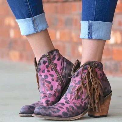 MoneRffi женская обувь 2019 модный Леопардовый принт сексуальные остроносые ботильоны без шнуровки с глубоким V-образным вырезом на высоком каблуке женские сапоги Bota Feminina