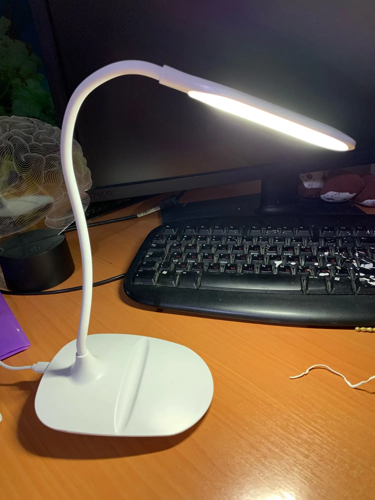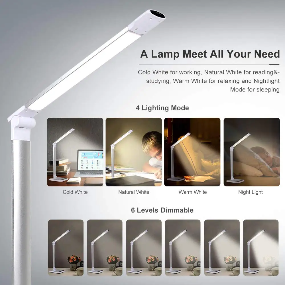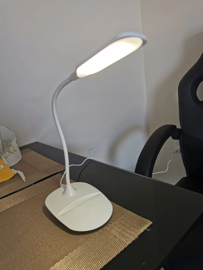 Очень необходимое, и это было очень недостающее изделие на моем столе. Свет очень хороший, имеет 3 варианта интенсивности света. Кабель поставляется с лампой, затем вам нужна головка зарядного устройства для подключения. Я думал, что он перезаряжается, но на самом деле является приспособлением для энергии. Создает небольшой шум при подключении. Но ничего, что мешает исследованиям.