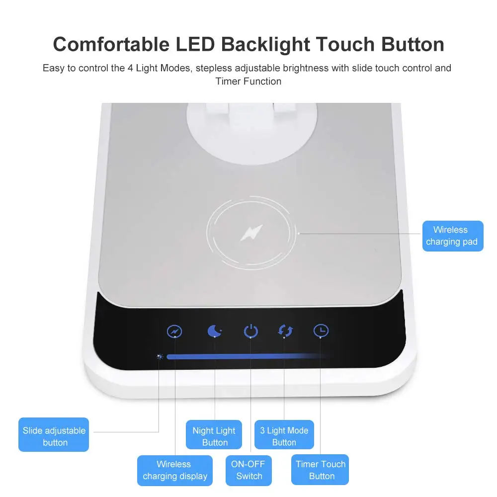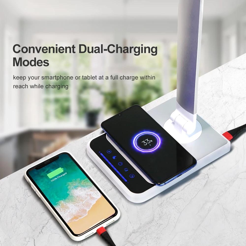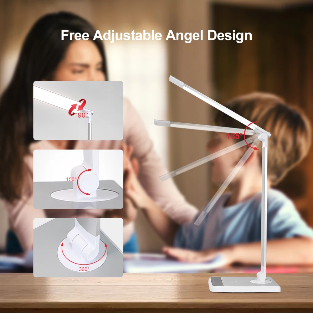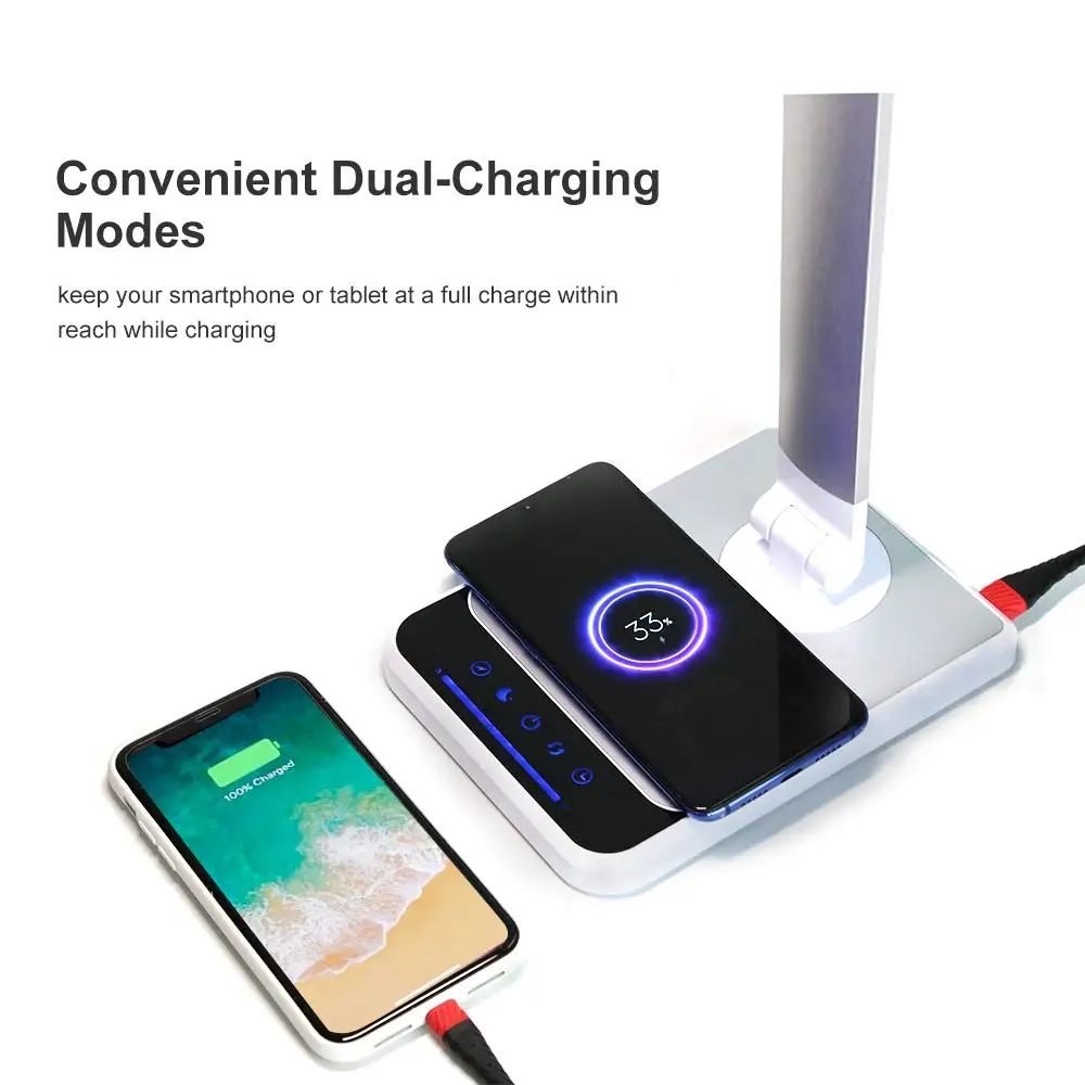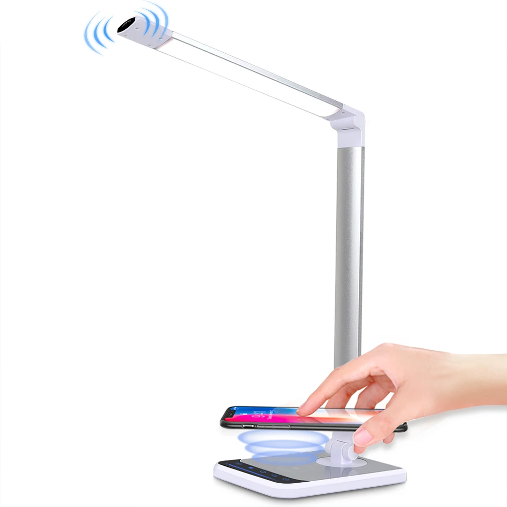 Светодиодная настольная лампа для чтения с беспроводным зарядным устройством, 18 Вт