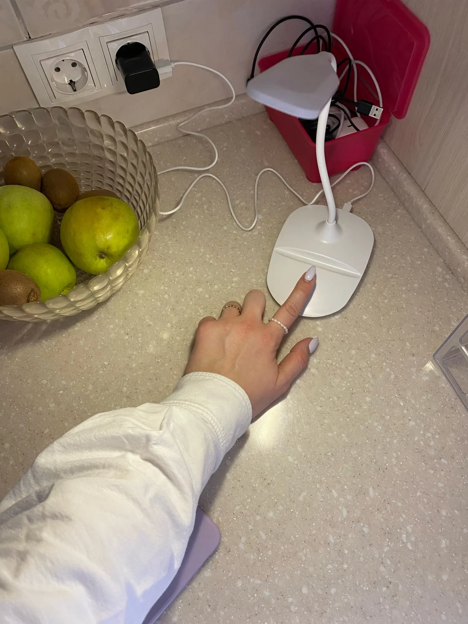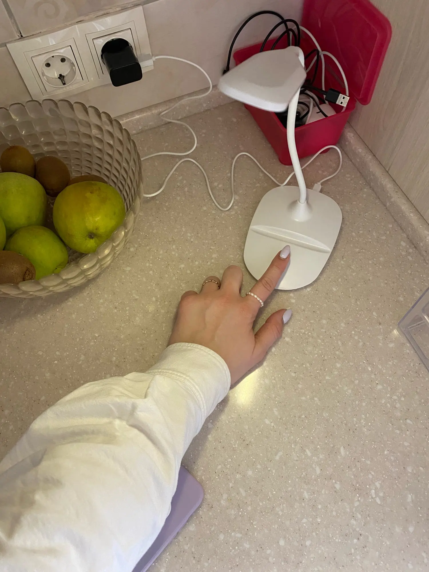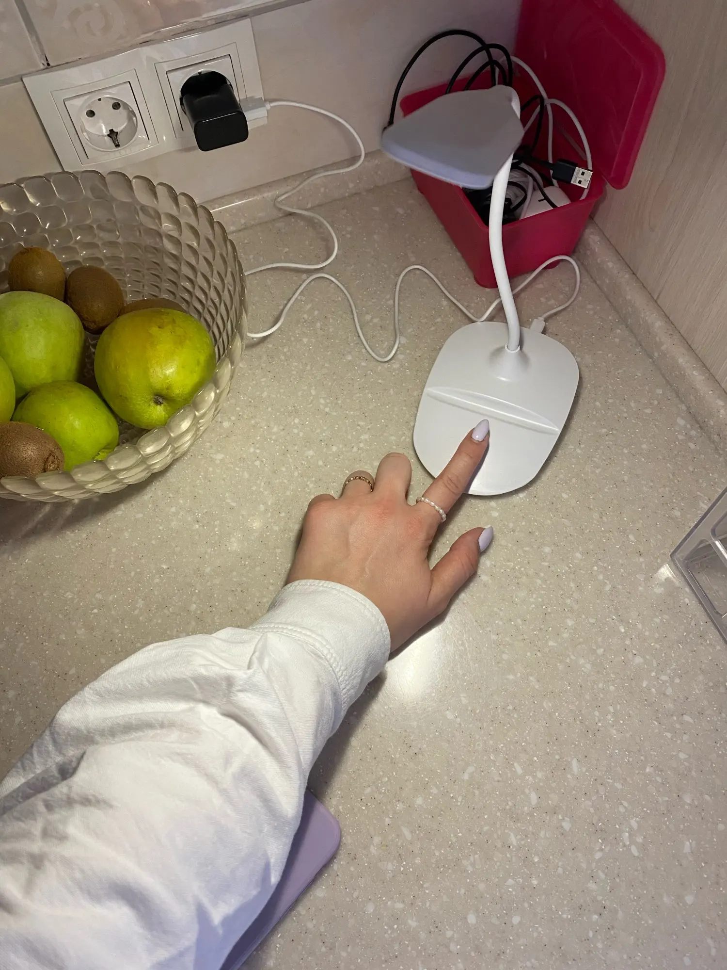 Всё отлично, получила в Берлине через 24 дня. Работает в 3-х режимах. Хорошая подставка под телефон и зарядка. Неожиданно только маленький размер лампы. А так всё хорошо, спасибо большое.