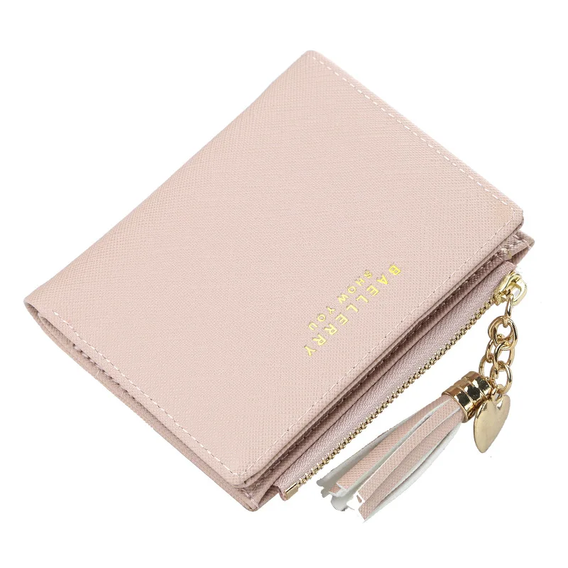 Женский кожаный кошелек с кисточками, новый милый укороченный бумажник на молнии, мягкий розовый Дамский клатч с кармашком для мелочи и карт