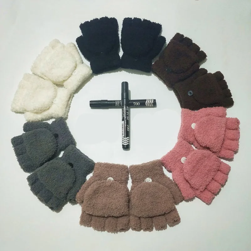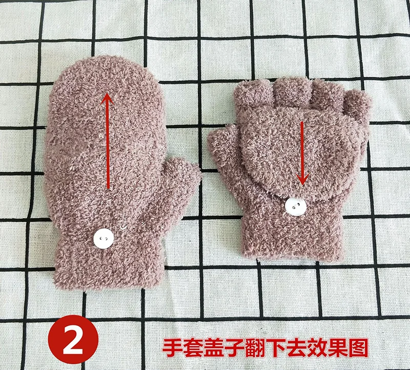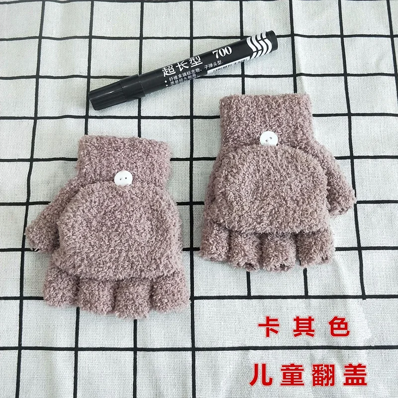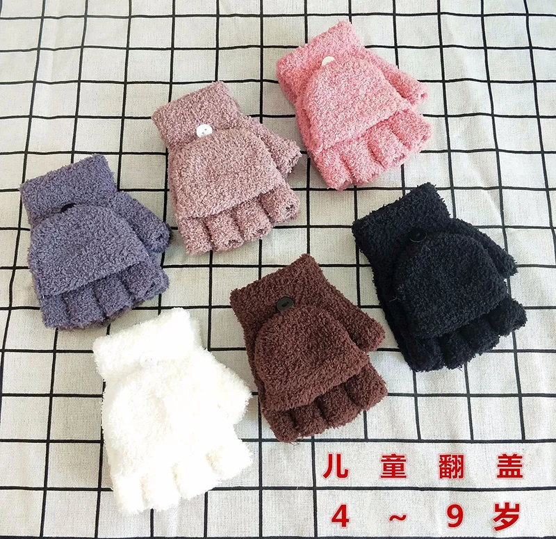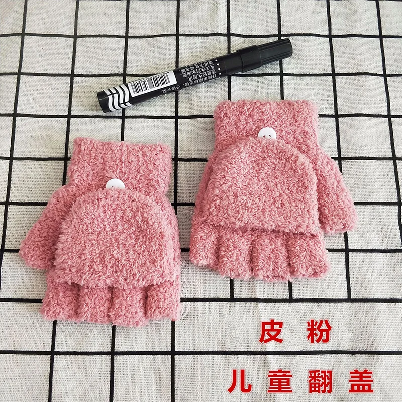 Детская трикотажная варежка из кораллового флиса на половину пальца флип-манжета для мальчиков и девочек зимняя плюс бархатная плотная теплая модель От 4 до 9 лет C92