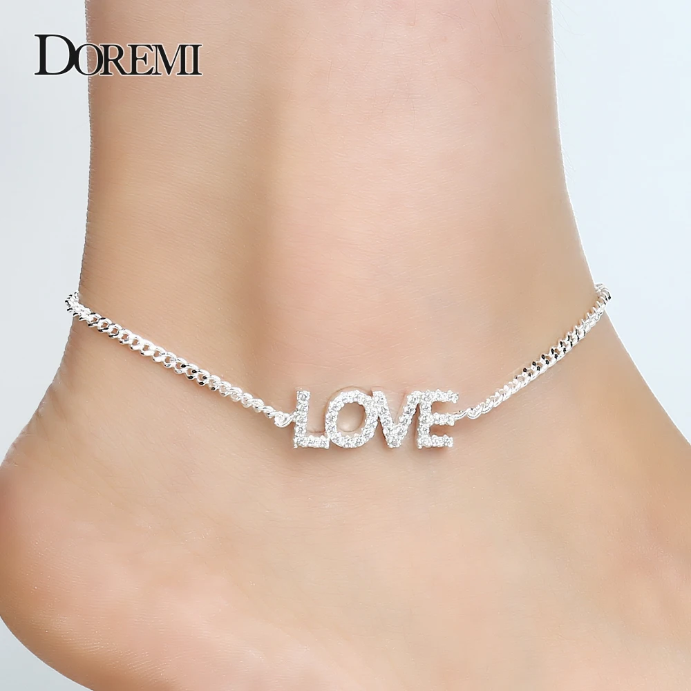Браслет на лодыжку женский DOREMI, 21 см, с цирконом, с именемцифрами, 3 А