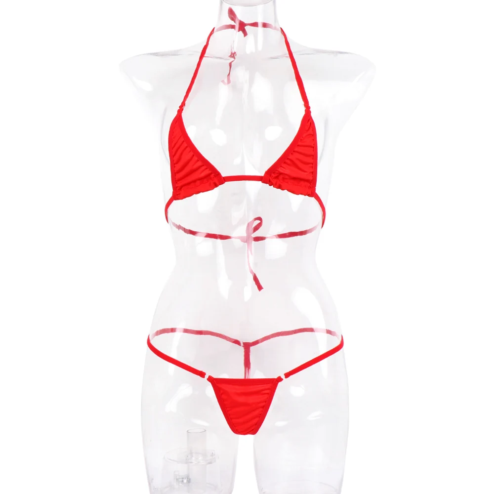 Женский сексуальный комплект микро-бикини-стринги, бюстгальтер, топ, стринги, нижнее белье, купальники