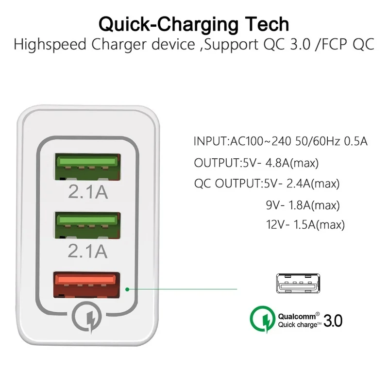 Быстрая зарядка 3 порта Зарядное устройство 5 V 2.4A QC 3,0 Быстрая...