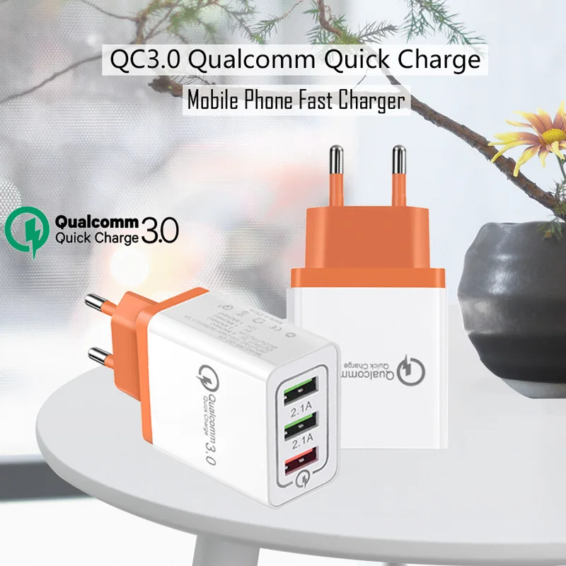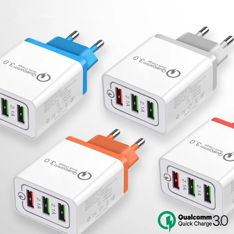 Зарядное устройство с 3 USB-портами для ЕС, быстрая зарядка 3,0 для...