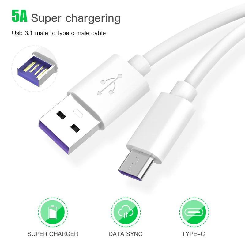 Кабель USB Type-C, 5 А, для Huawei P20 Lite, P30 Pro, P10, Honor 10, 20 Mate, 20 Lite, с функцией быстрой зарядки
