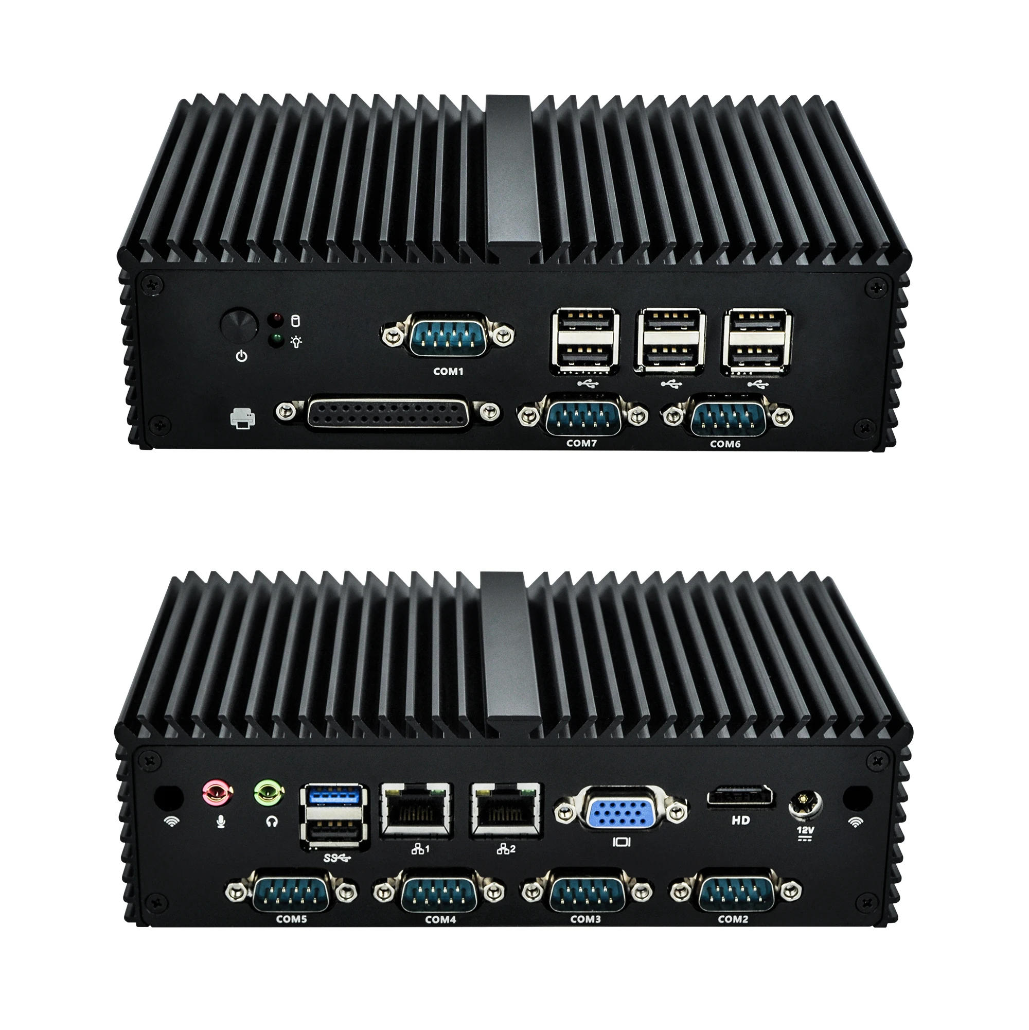 7 RS232 Micro Linux четырехъядерный J1900 промышленный безвентиляторный брандмауэр мини-ПК, поддержка LPT, PS2
