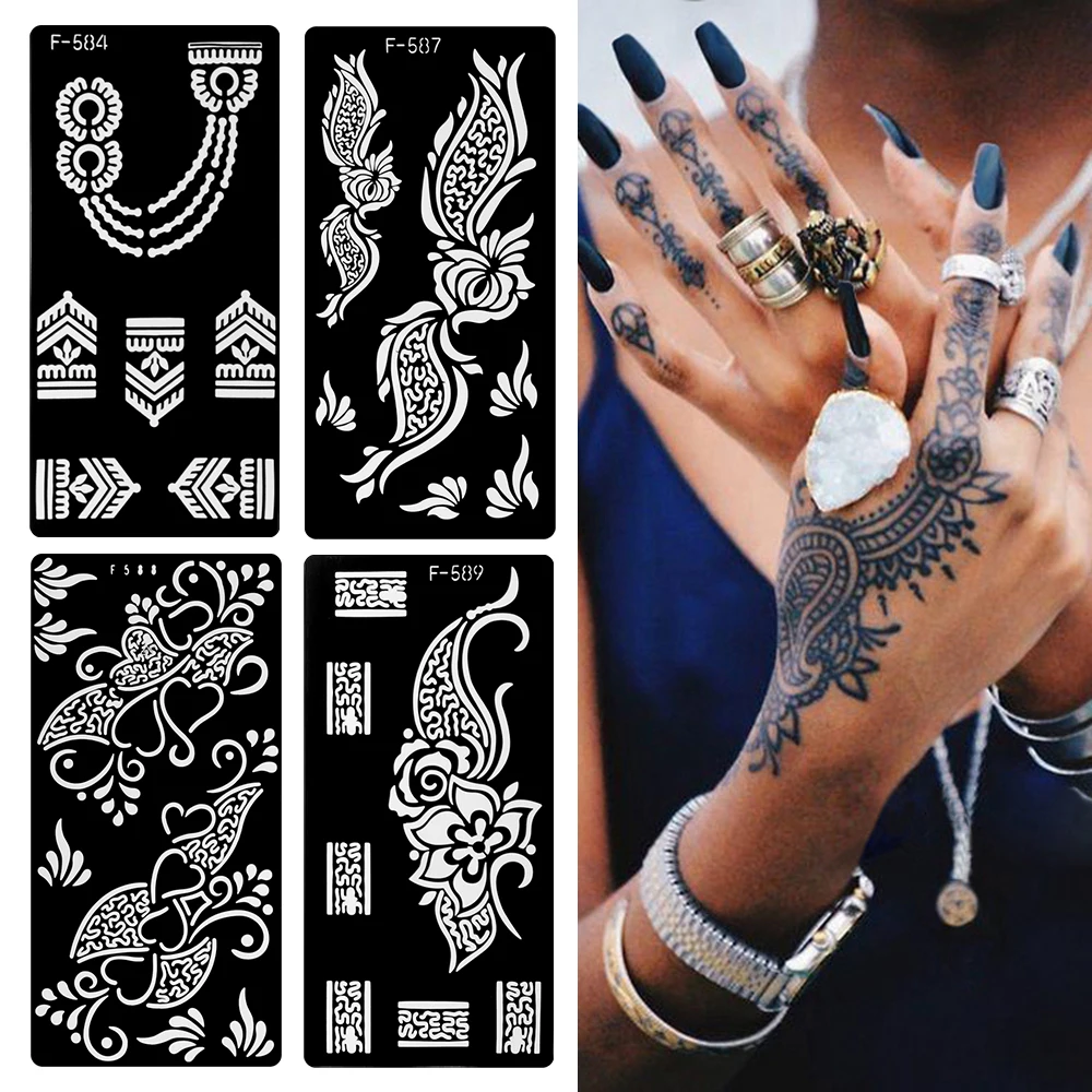 1 пара татуировки Трафареты хна шаблон Стикеры временные ручной нак...