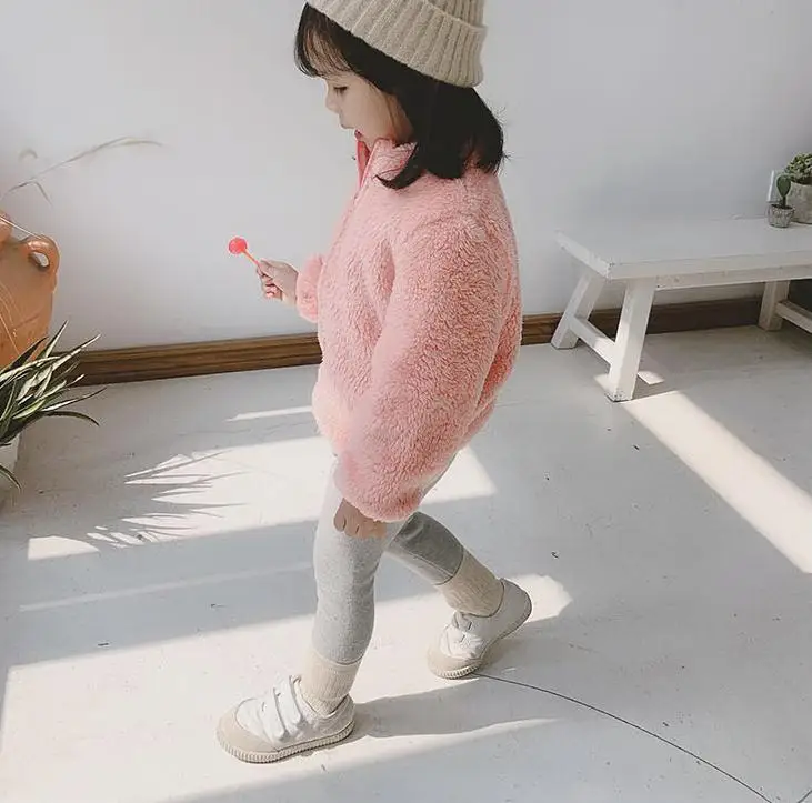 Новинка 2019, модное пальто для маленьких мальчиков и девочек, теплая однотонная теплая двухсторонняя шерстяная ткань на молнии с мягким ворсом, милое осеннее пальто