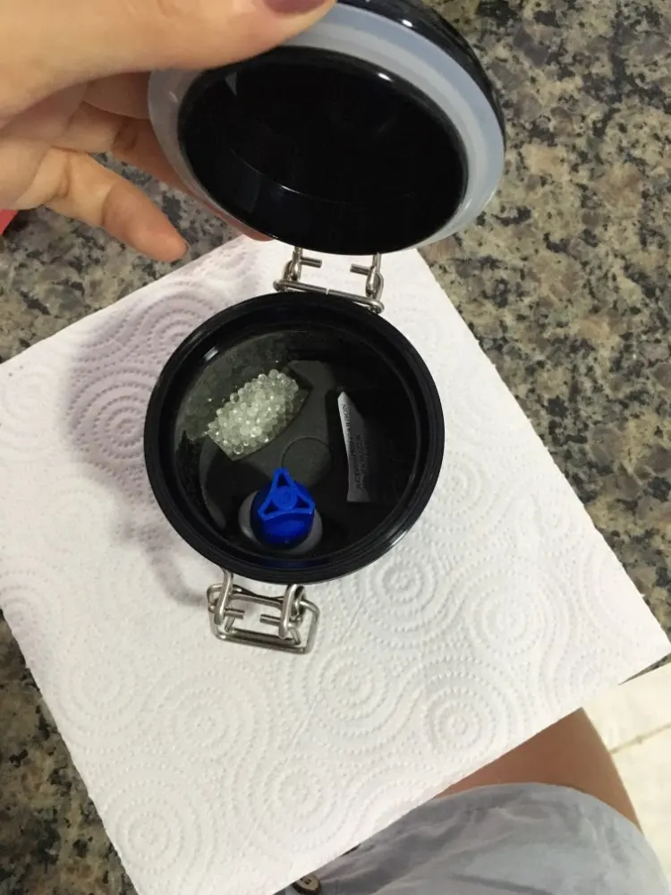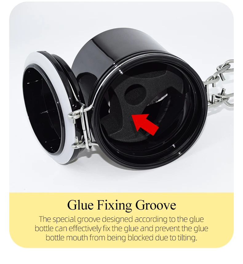 Замечательный продавец - всё очень быстро . Товаром довольна: крышка закрывается очень платно, внутри разделяющая губка для трёх баночек клея , пластик баночки плотный не воняет. Помещаются клея 5мл и 10мл.