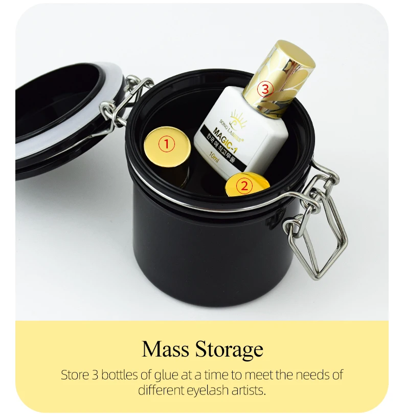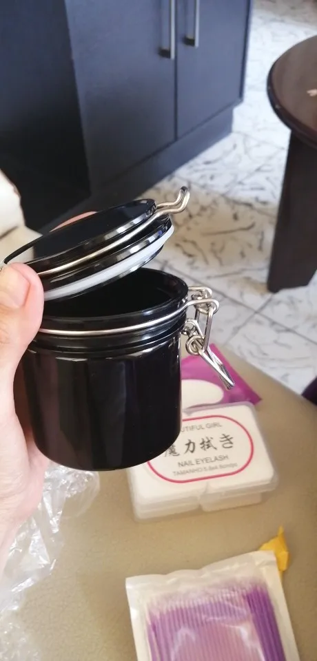 огромное спасибо за баночку, нравится. удобнее чем с пэтермо-пакетом. помещается 3 флакончика с обычным клеем для ресниц.