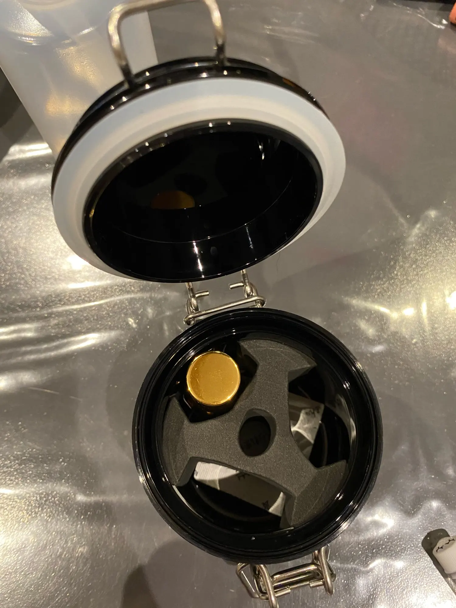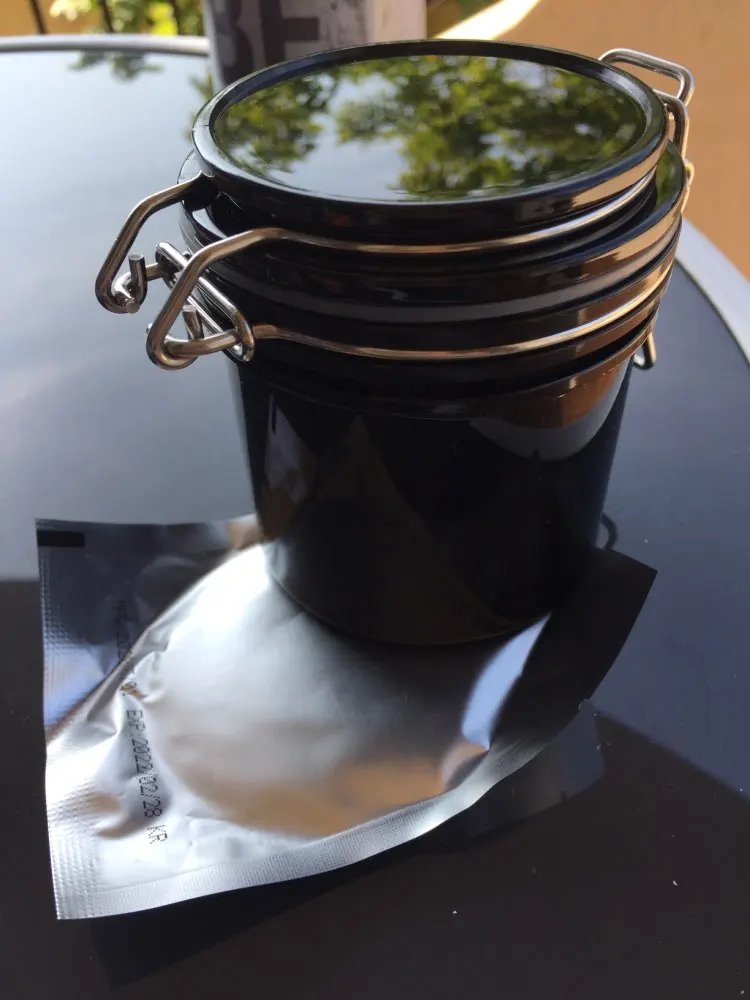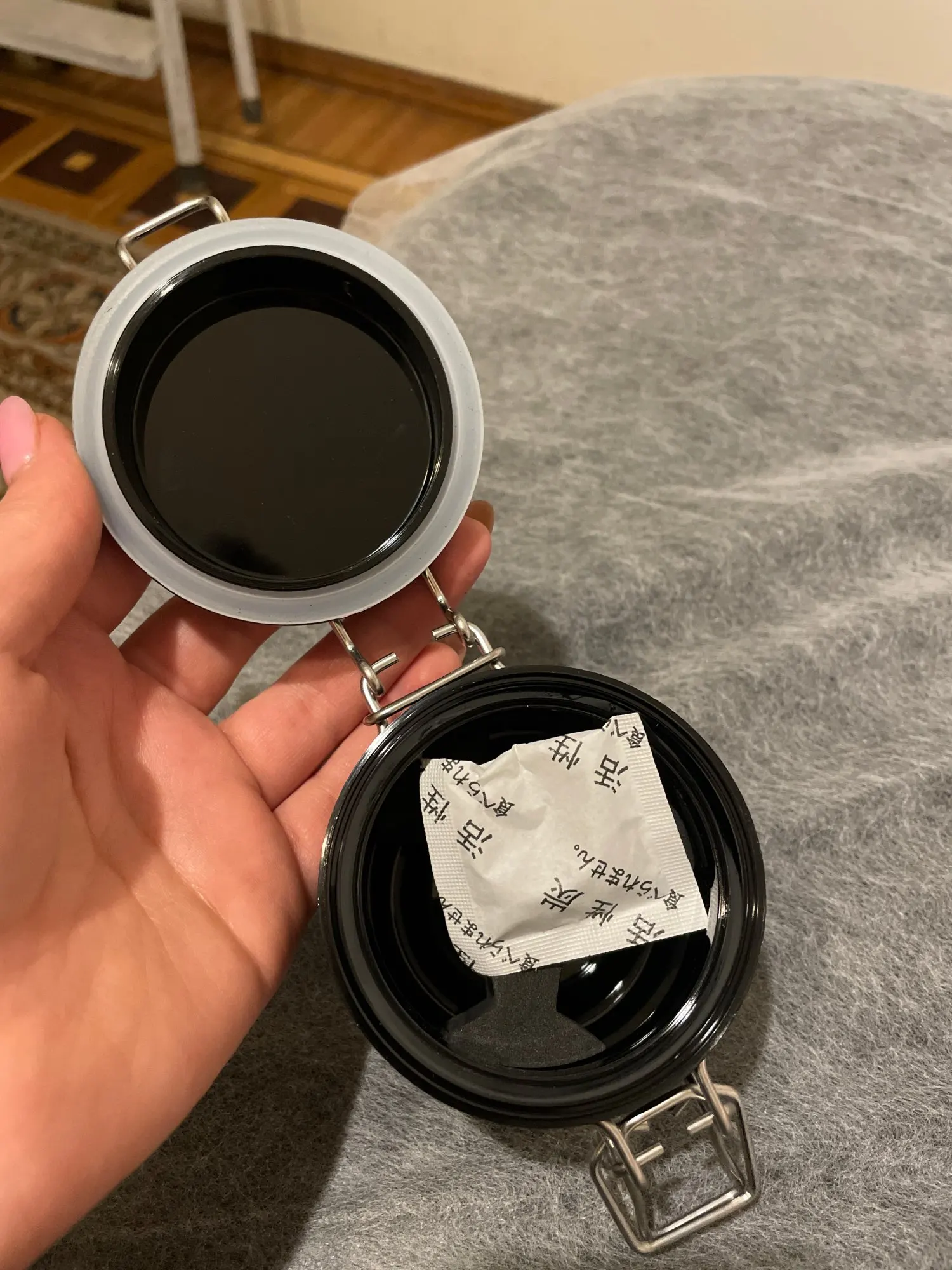 Посылка пришла быстро, размер банки больше, чем я ожидала. Закрывается герметично, все ок)