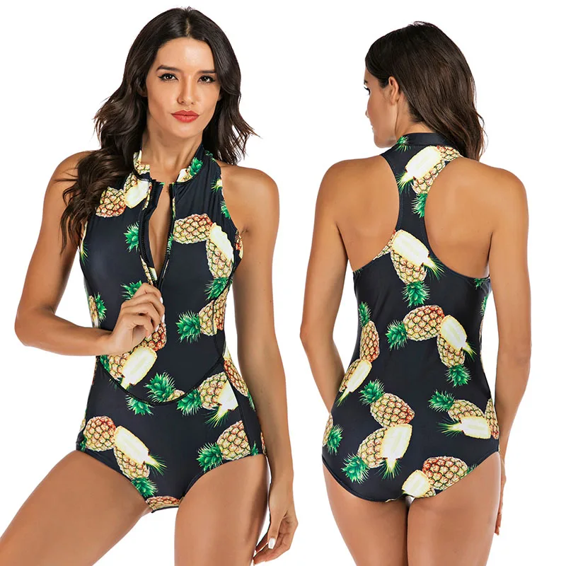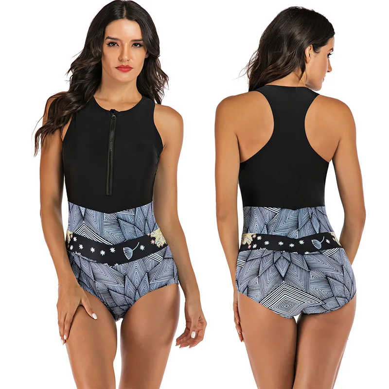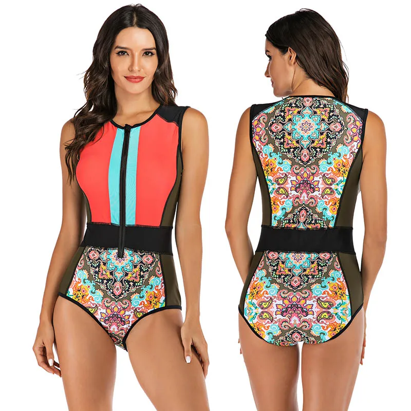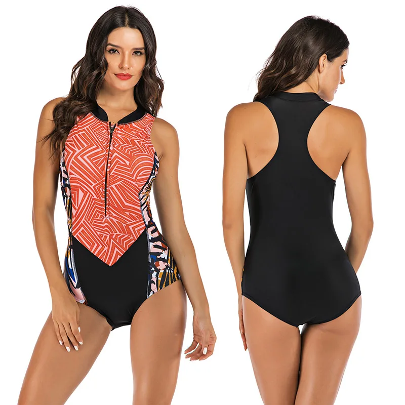 Сплошной купальник Vikionfly на молнии, женский спортивный сплошной купальник с принтом, купальный костюм для серфинга, 2021