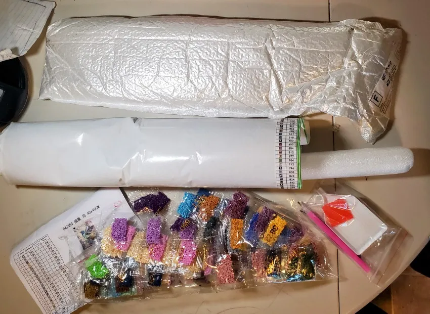 Kit containsCanvas, diamond kit, clay, tray, tweezers