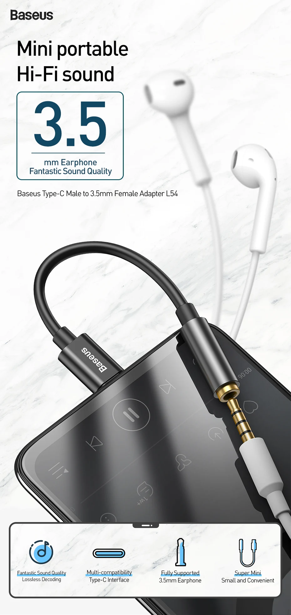 Baseus Type C 3,5 Jack наушники USB Type C до 3,5 мм Aux адаптер для наушников аудио кабель для Huawei Honor Xiaomi mi 10 9 8 Oneplus
