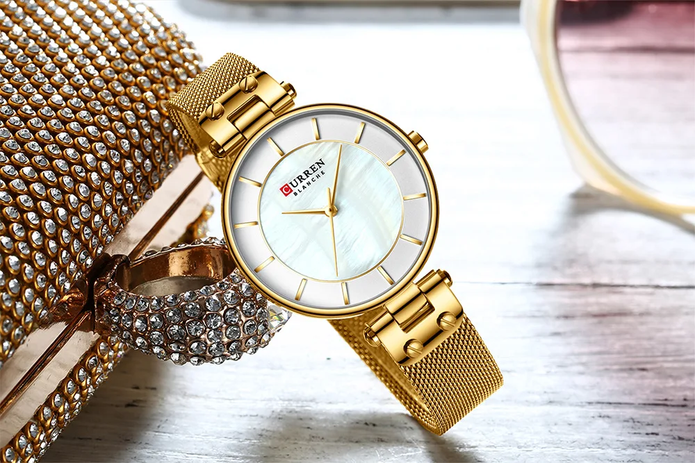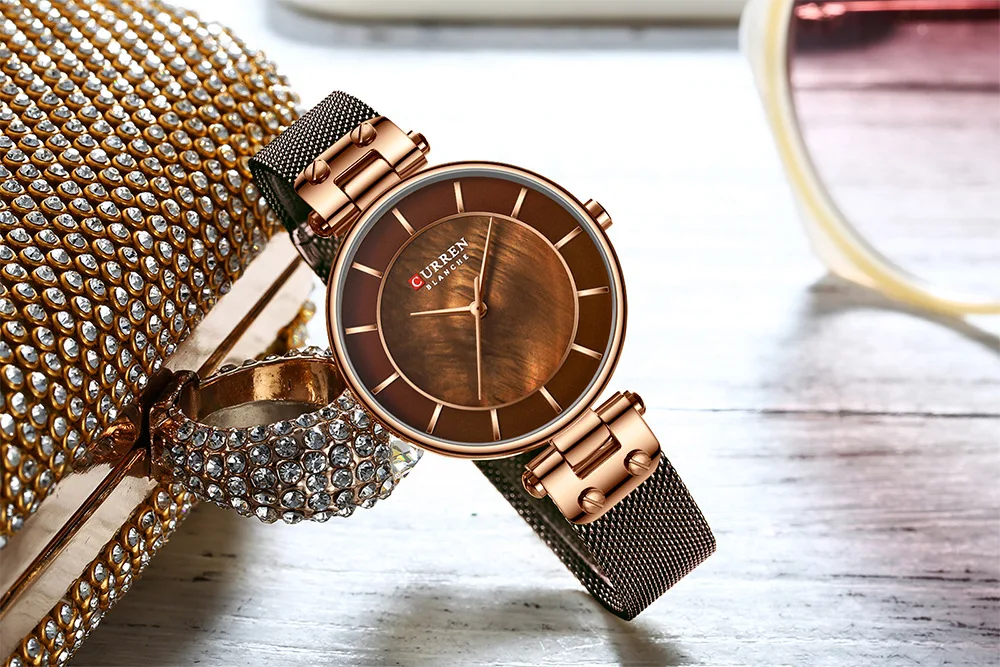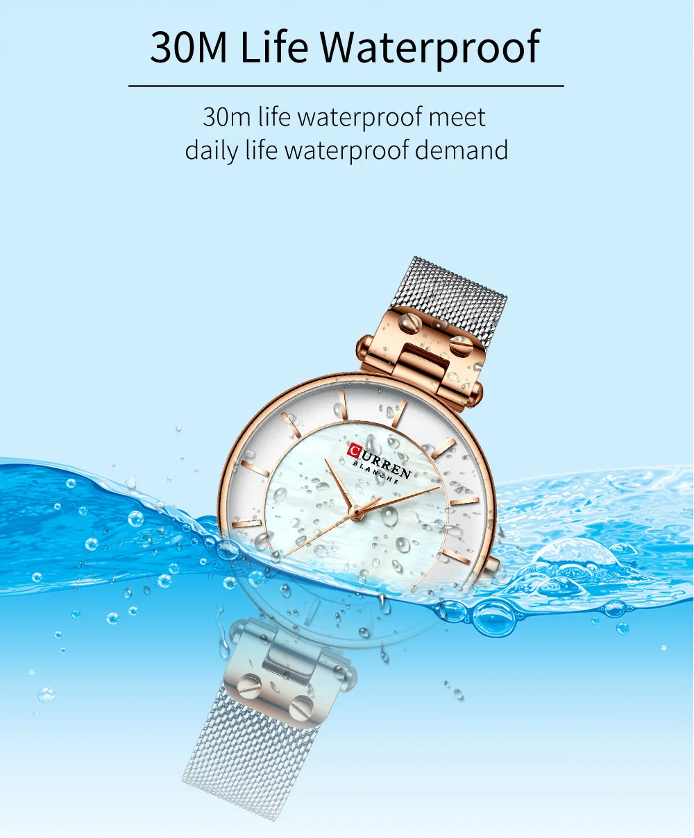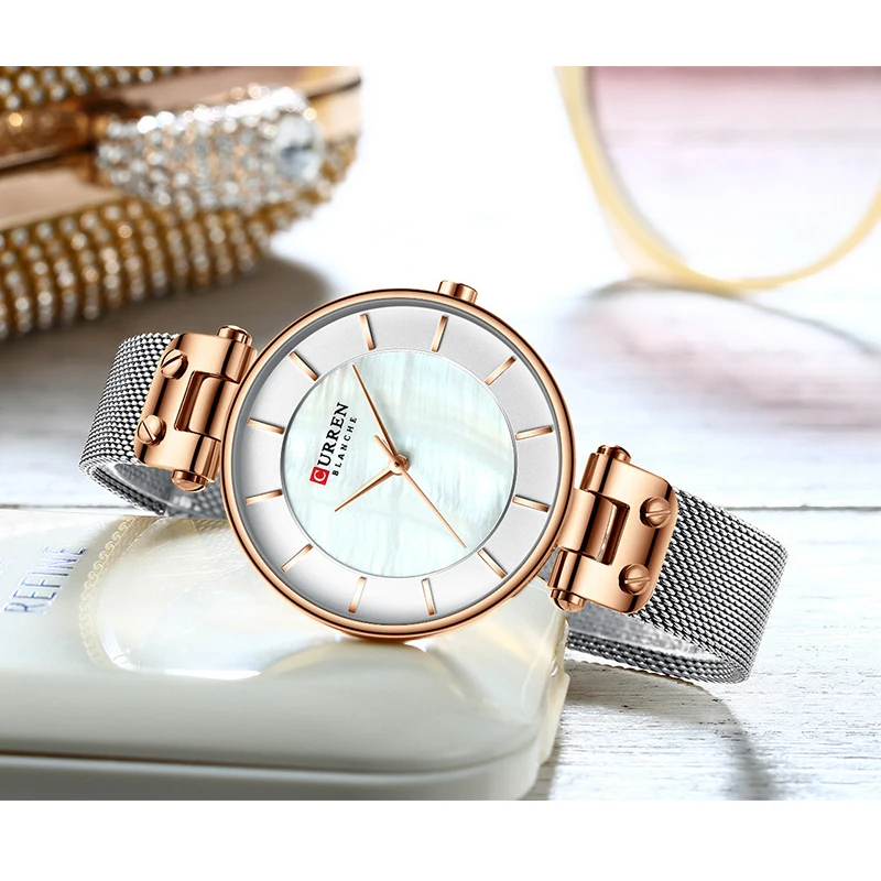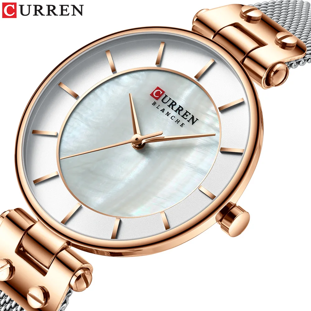 CURREN Роскошные часы из нержавеющей стали женские кварцевые часы из розового золота Женские повседневные водонепроницаемые наручные часы модные простые женские часы