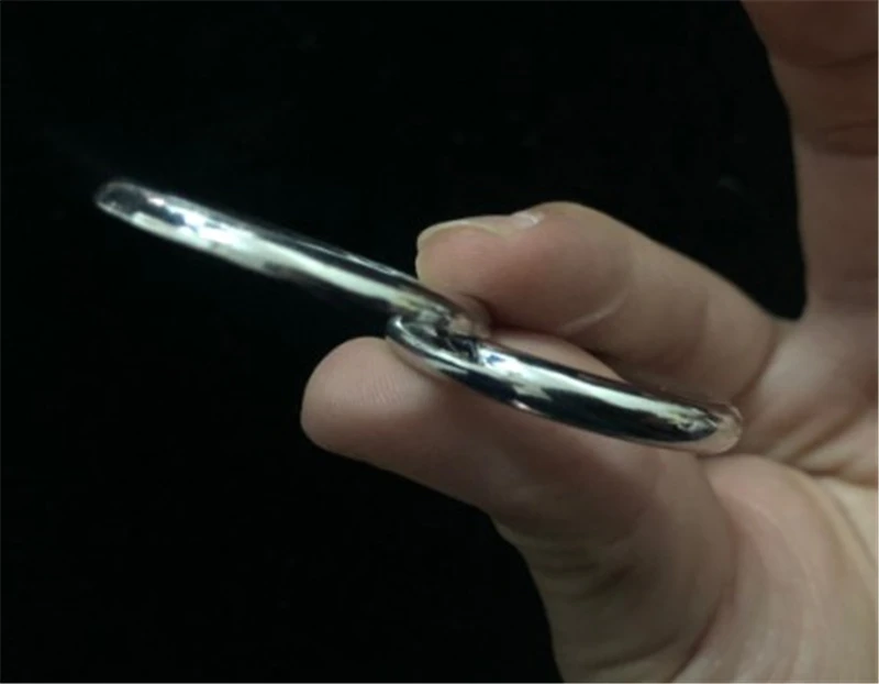 Это металлическое кольцо, которое делает самые удивительные вещи. Например, он может проникнуть в носовой платок для заемщика, в то время как концы Хэнка удерживаются зрителем! Он может волшебным образом проходить через канаты или даже вашу волшебную палочку! Еще одна возможность с этим тонким опором-разместить его на большом пальце зрителя. Накройте большой палец стержнем, снимите кольцо и сделайте так, чтобы оно исчезло. Где кольцо? Верьте или нет, он снова на большом пальце зрителя-и зритель не знает, как он туда попал!