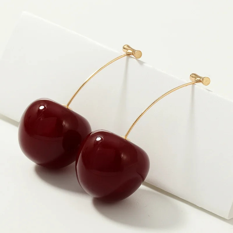 Женские Длинные вишневые серьги, геометрические каучуковые серьги ручной работы, модный акриловый дизайн, с кристаллами, 2020