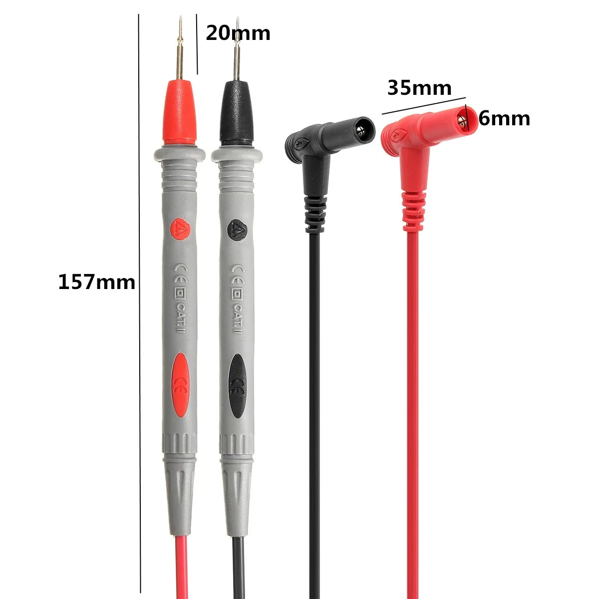 Технические характеристикиЦвет: красный, черныйМатериал: ПВХ-проволока• Сила тока:20AОбщая длина:Низкотемпературные условия: 0 градусов ~ 40 градусовИспользуется для: всех цифровых мультиметров Особенности-Фирменная Новинка и высокое качество.-Он может подключаться к мультиметру, Зонды очень подходят для sharp, подходят для IC pins, светодиодный модуль и мелкие компоненты.-Это универсальное устройство для всех цифровой мультиметр. Супер острый тонкий и высокая точность. Упаковка включает1x20A тестовый свинец зонда1xalligator зажимы