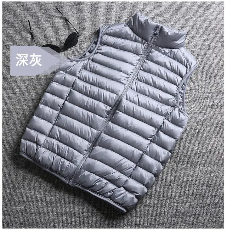 Новинка, зимний мужской жилет на белом утином пуху, Сверхлегкий жилет без рукавов, модный мужской жилет большого размера с воротником-стойкой