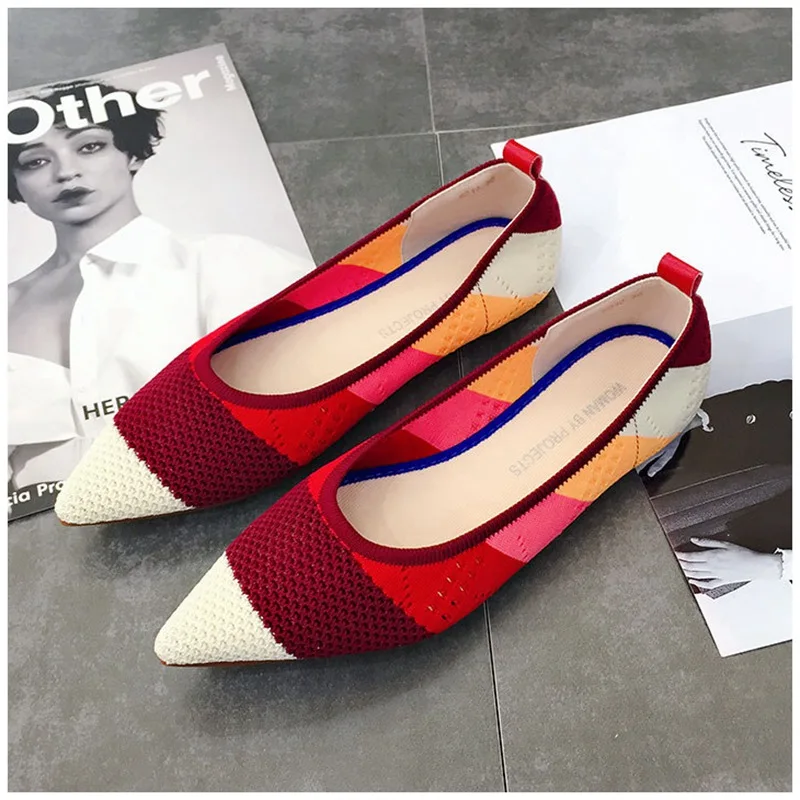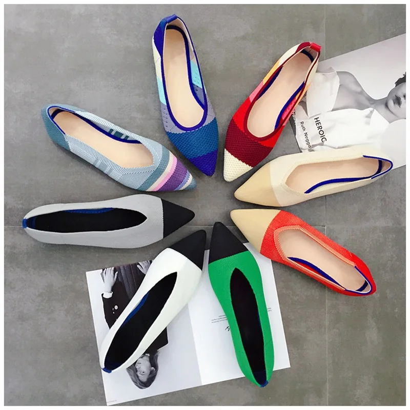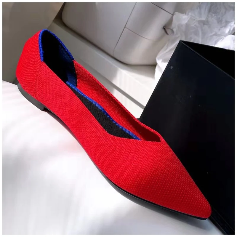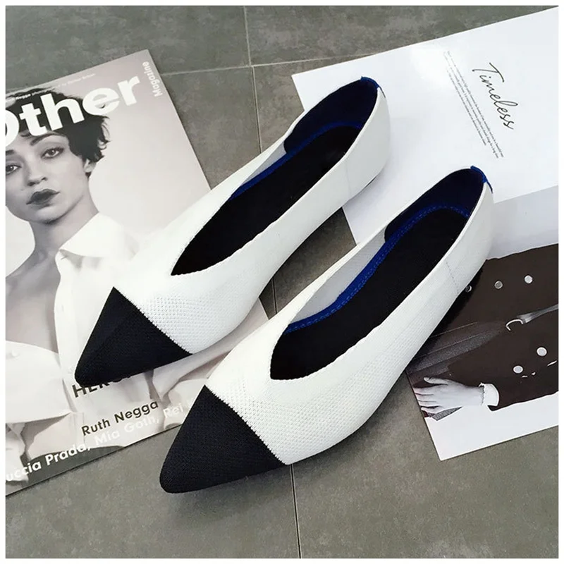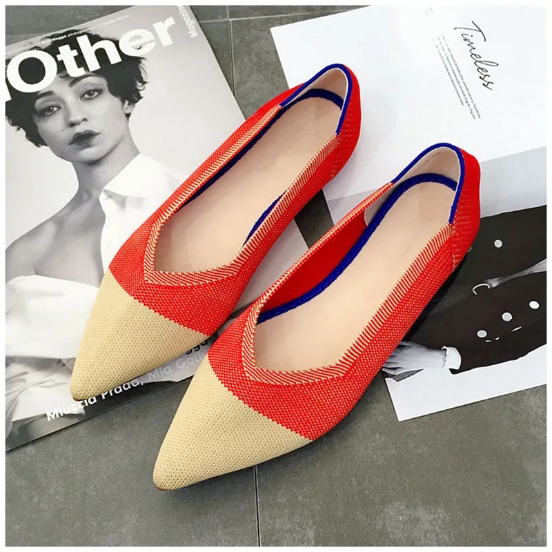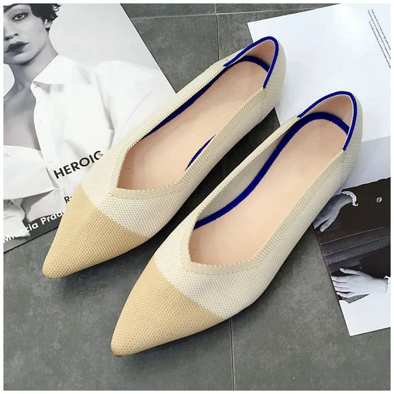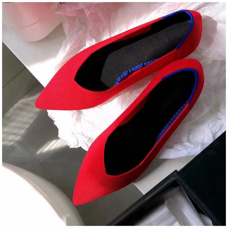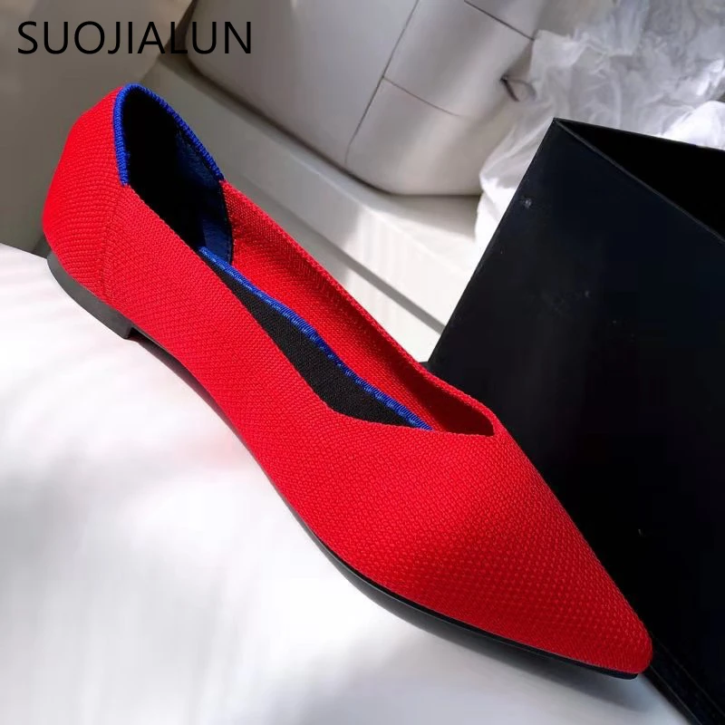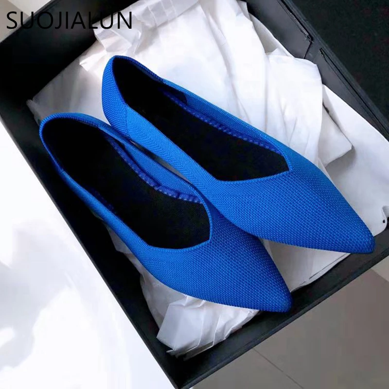SUOJIALUNженские туфли на плоской подошве; Дышащие вязаные Лоферы без застежки; Модные туфли с острым носком из эластичной ткани; Женская повседневная обувь на плоской подошве