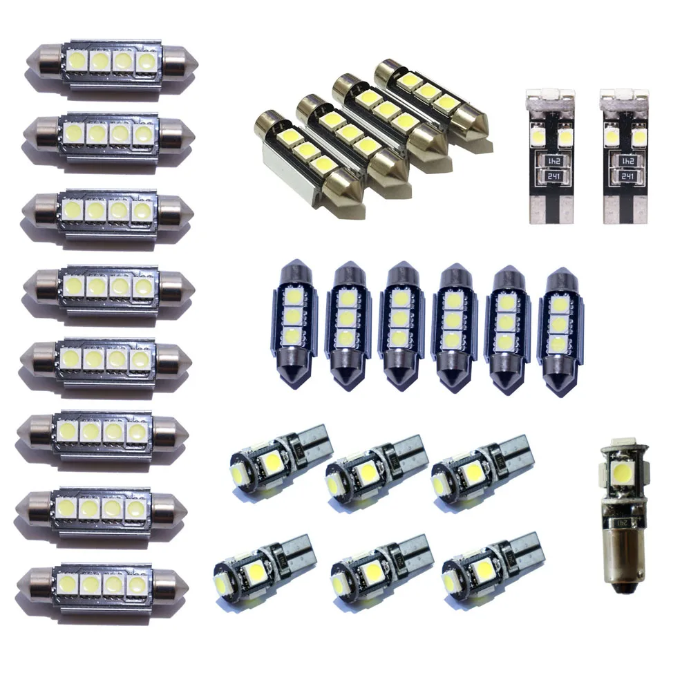 27 шт. белый светодиодный светильник для салона автомобиля, лампы для чтения номерного знака, купольная лампа постоянного тока 12 В, комплект для Mercedes Benz E class W211(2002-2008)