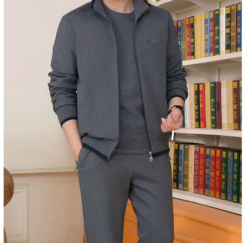 Комплект спортивный мужской из двух предметов, серый свитшот на молнии со стойкой, на осень, 2020