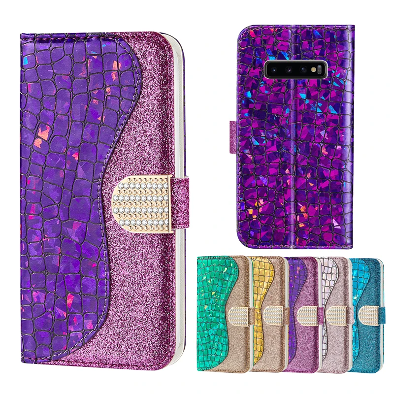 Чехол-бумажник с лазерной пудрой для Samsung Galaxy S10 5G S10E S9 ...