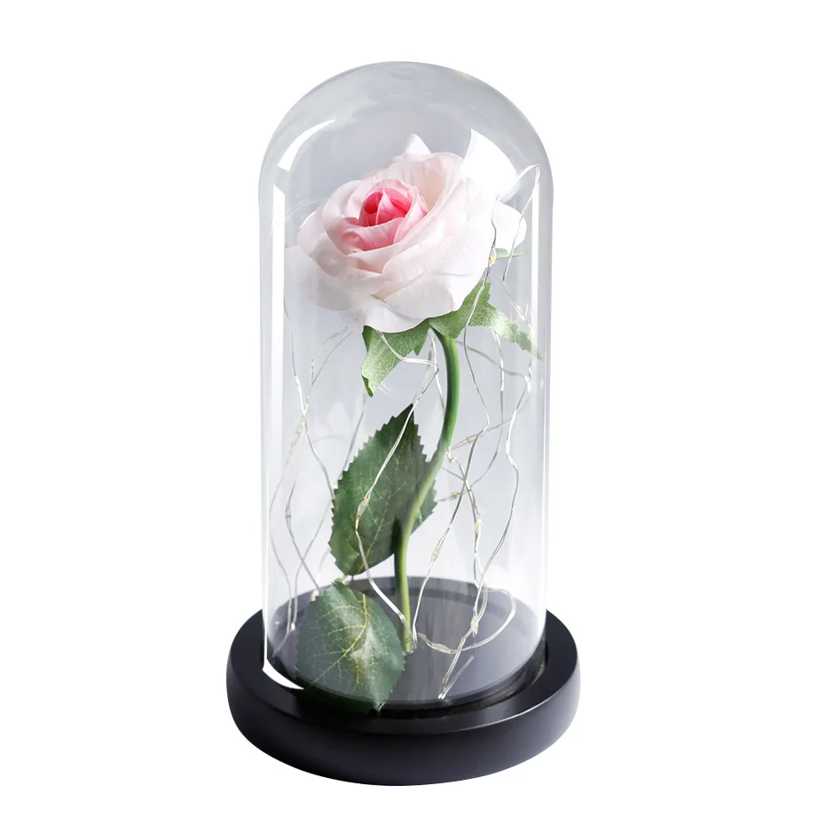 Красивый светодиодный светильник с розами, вечная красота и розовый зверь на кристальном куполе на День святого Валентина