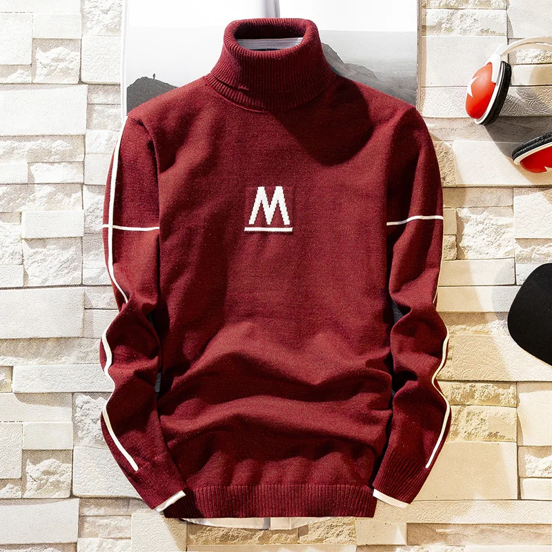 Новинка осени 2021, мужской свитер с высоким воротником, мужской пуловер, Мужская однотонная Облегающая водолазка, свитер, топы, вязаные пуловеры