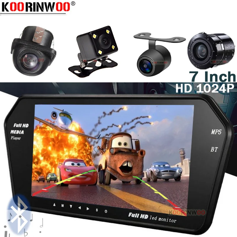 Парковочный комплект Koorinwoo, зеркало с монитором 7 дюймов, TF, USB, Bluetooth, MP5, FM, Автомобильная камера заднего вида, видеовход, помощь в парковке