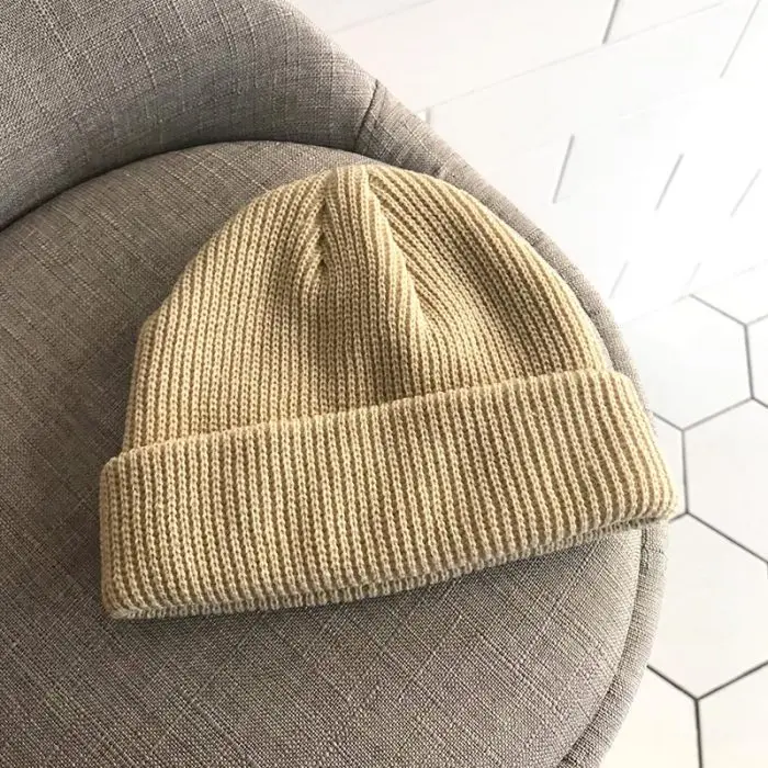 Зимняя ребристая трикотажная короткая шапка с манжетами в стиле уни...